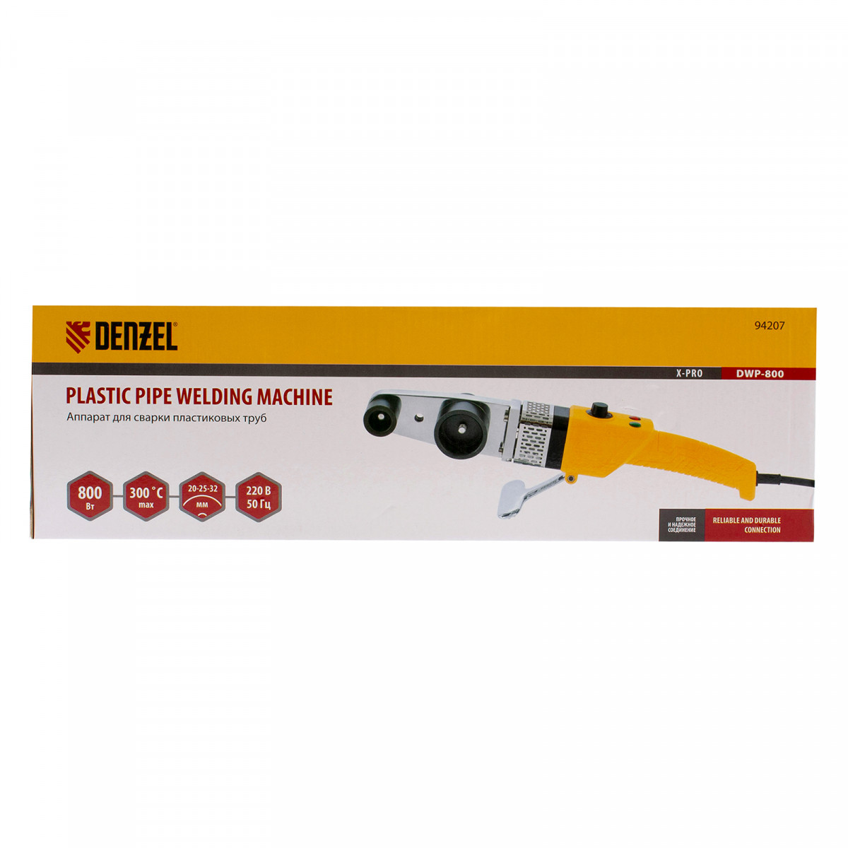 Аппарат для сварки пластиковых труб DWP-800, Х-Pro, 800 Вт, 300 град, комплект насадок, 20-32 мм Denzel