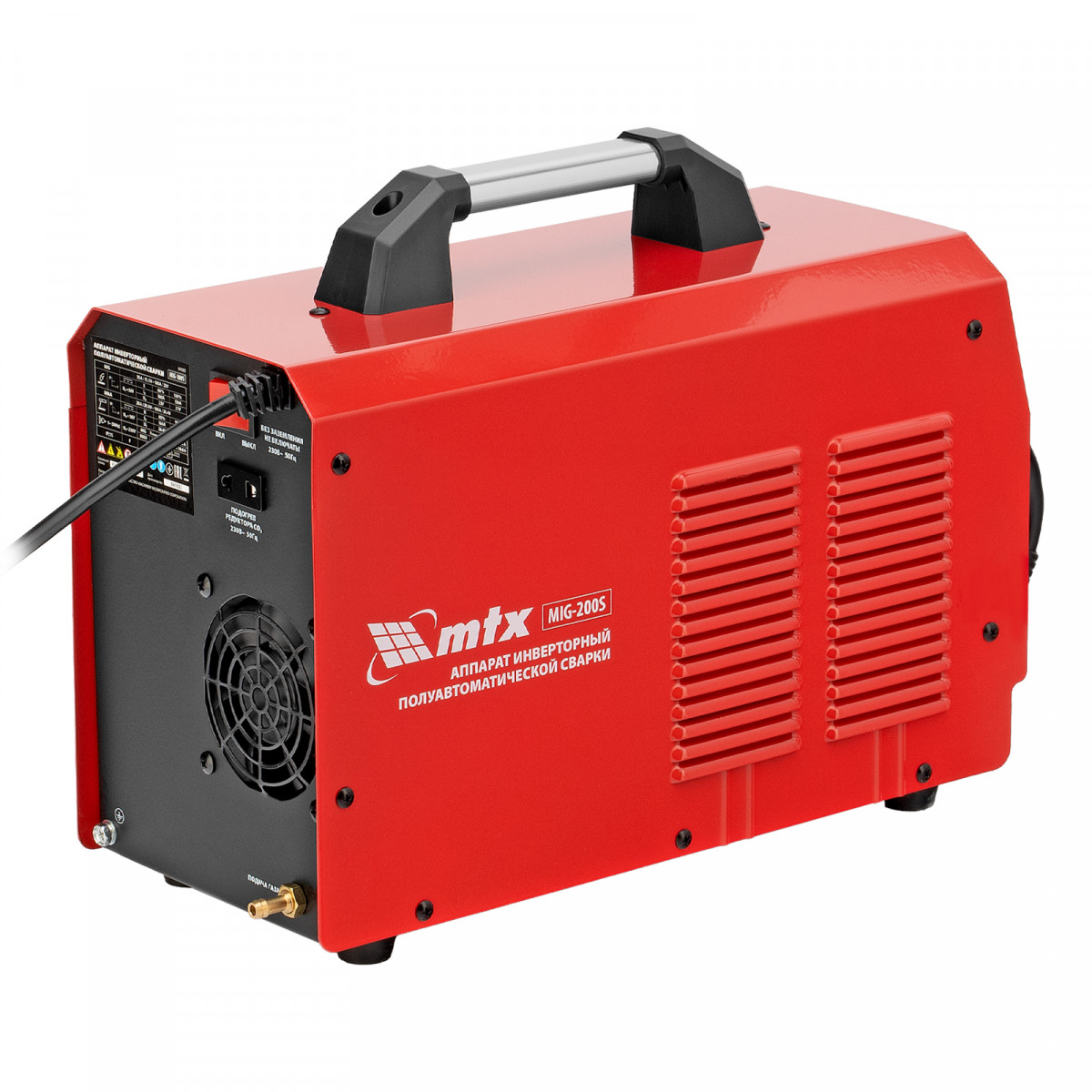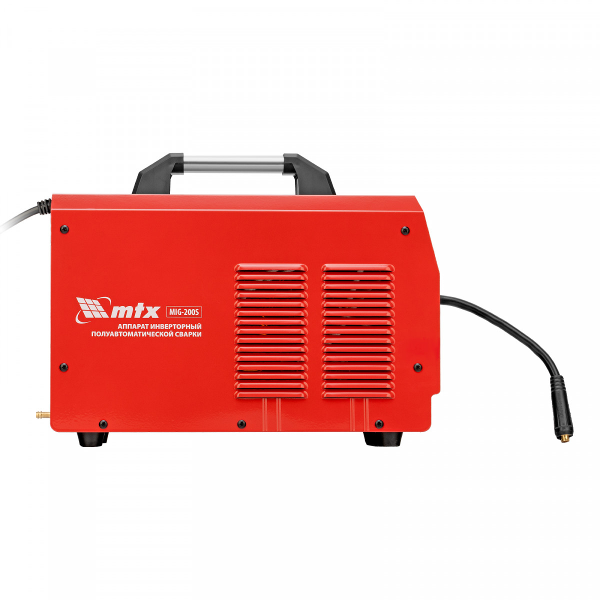 Инверторный аппарат полуавтоматической сварки MTX MIG-200S 94303, предназначенный для сварки на максимальном токе до 200 А, имеет продолжительность включения 60% и совместим с катушками весом до 5 кг. Используется для работы со сталями, черными и цветными металлами. Сварочный аппарат изготовлен с использованием передовой технологии IGBT, позволяющей получать стабильный сварочный ток на выходе. Аппарат имеет высокий КПД при низком энергопотреблении, способен работать при пониженном до 180 В напряжении.