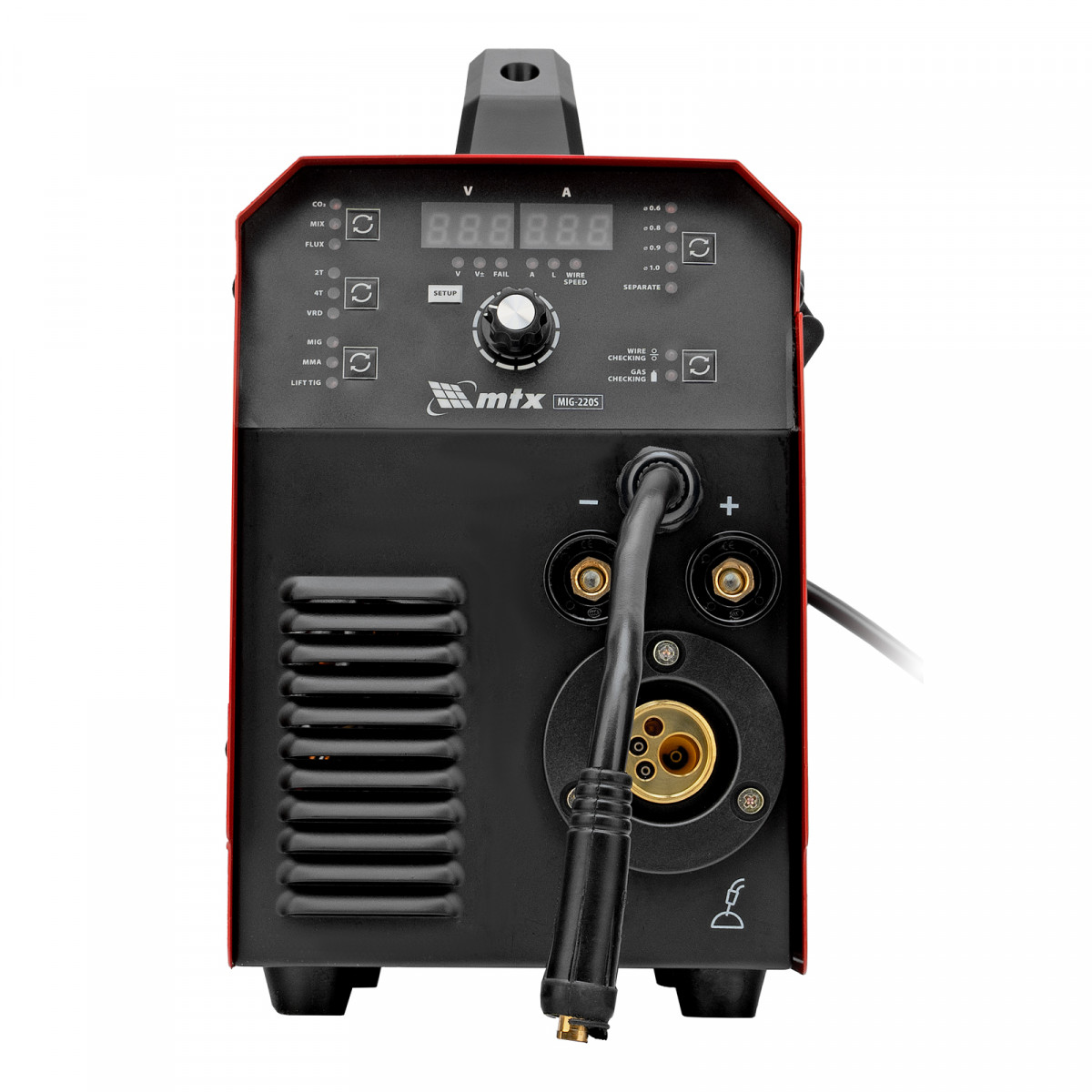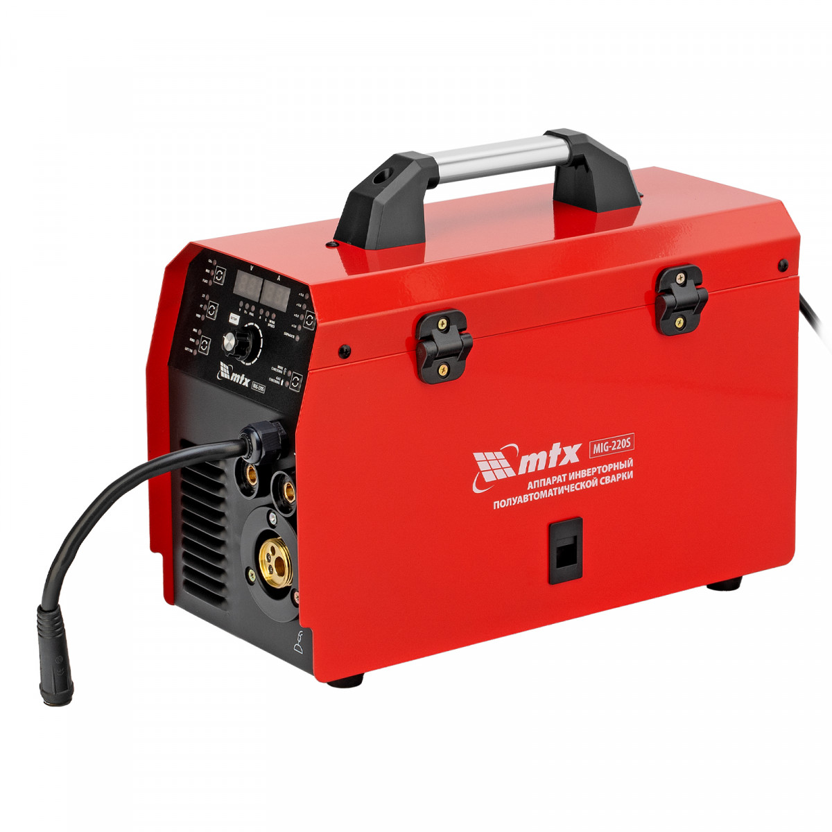 Инверторный аппарат полуавтоматической сварки MTX MIG-220S 94304, предназначенный для сварки на максимальном токе до 220 А, имеет продолжительность включения 60% и совместим с катушками весом до 5 кг. Используется для работы со сталями, черными и цветными металлами. Сварочный аппарат изготовлен с использованием передовой технологии IGBT, позволяющей получать стабильный сварочный ток на выходе. Аппарат имеет высокий КПД при низком энергопотреблении, способен работать при пониженном до 180 В напряжении.