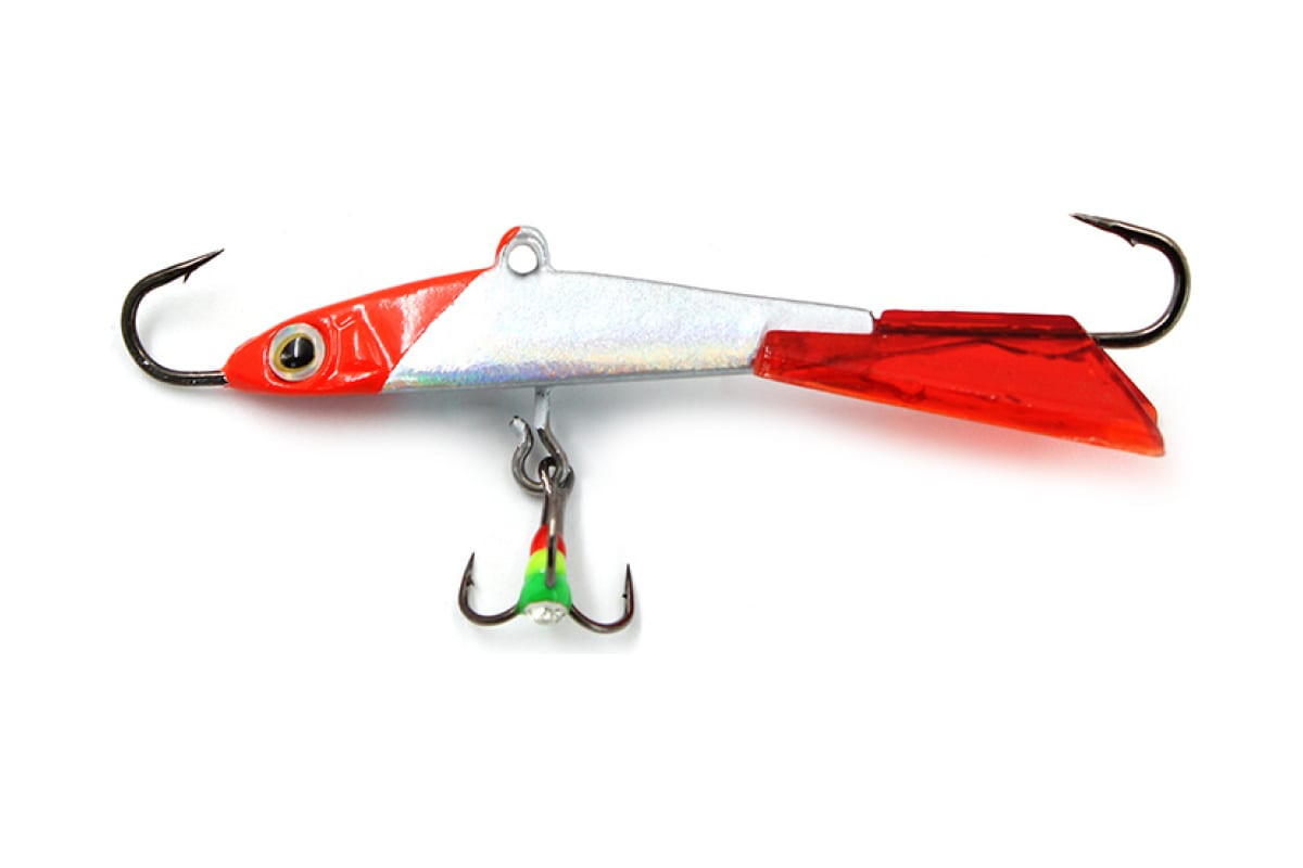 Имеет острую мордочку и выразительные глаза с жестким пластиковым хвостиком красного цвета, благодаря которому приманка имеет интересную игру с разворотами по вертикали. Это применяется для привлечения хищника к лунке с больших расстояний. Эти приманка двигаются плавно и далеко, и медленно возвращаются к лунке.