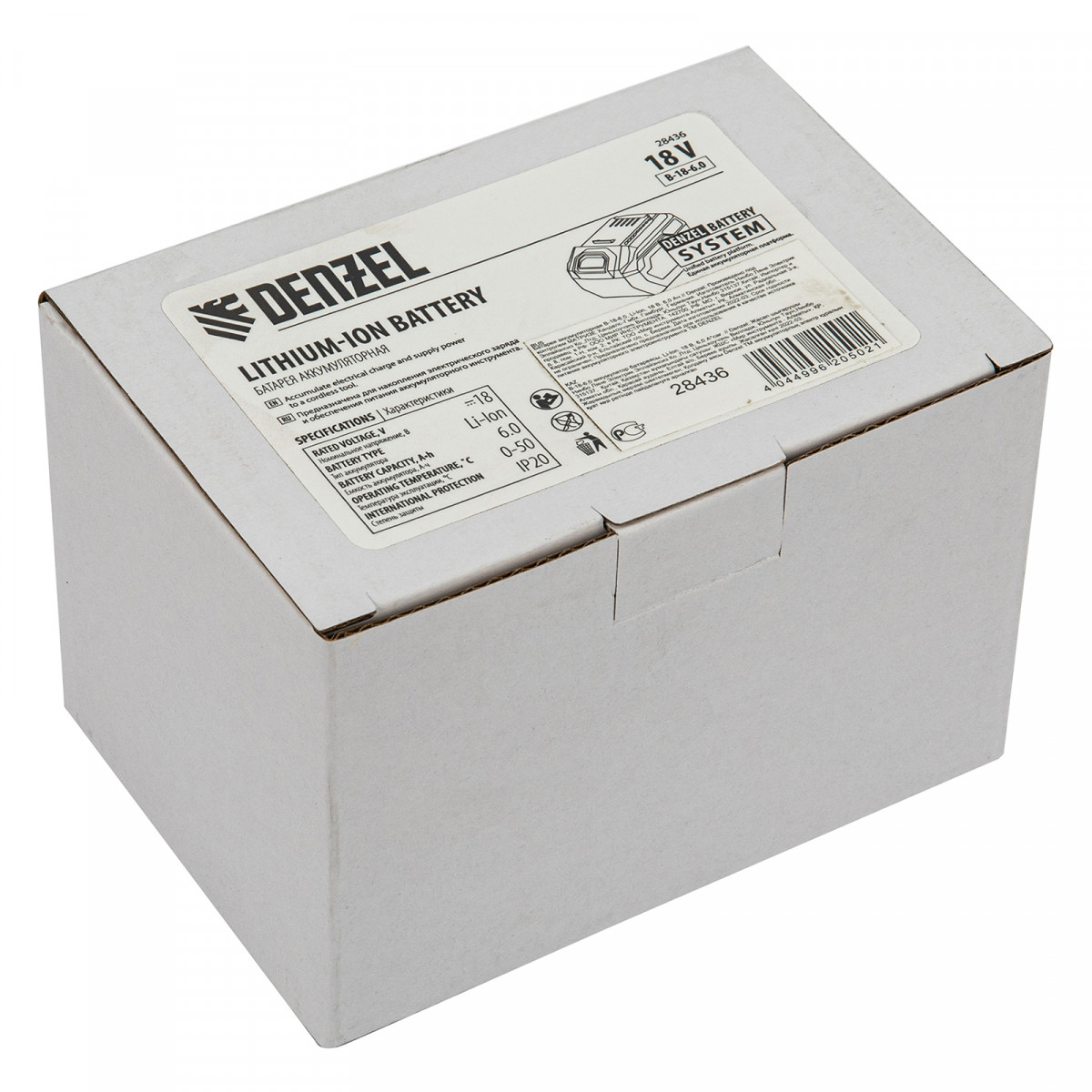 Батарея Li-Ion Denzel B-18-6.0 28436 на 6,0 Ач, номинальным напряжением 18 В, предназначена для обеспечения бесперебойной работы аккумуляторного инструмента. Совместима со всеми инструментами 18V Denzel battery system серии IB (кроме модели 58910) и соответствующими зарядными устройствами.
