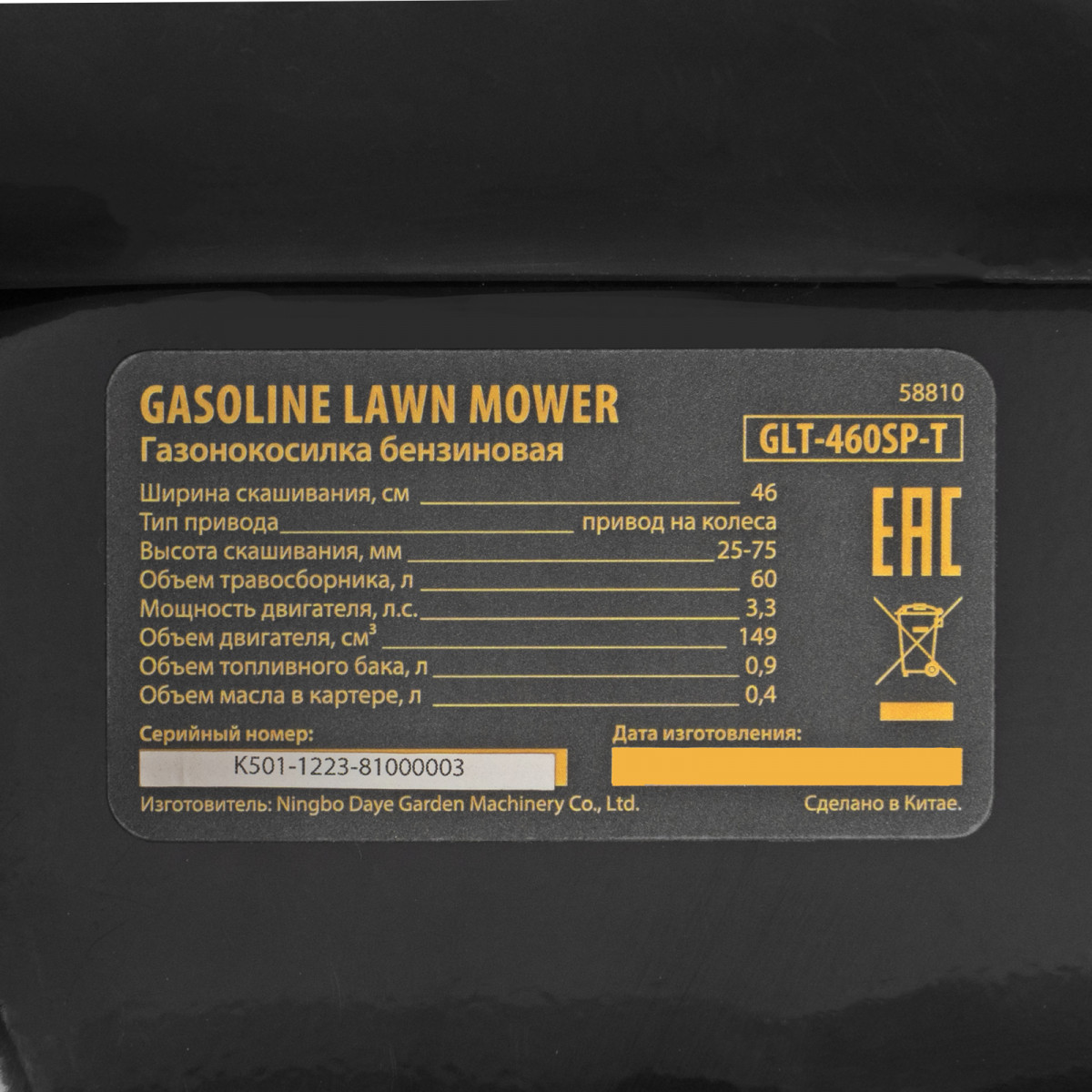 Бензиновая газонокосилка GLT-460SP-T, Trike 149 см3, 46 см, привод, панель, 60л Denzel