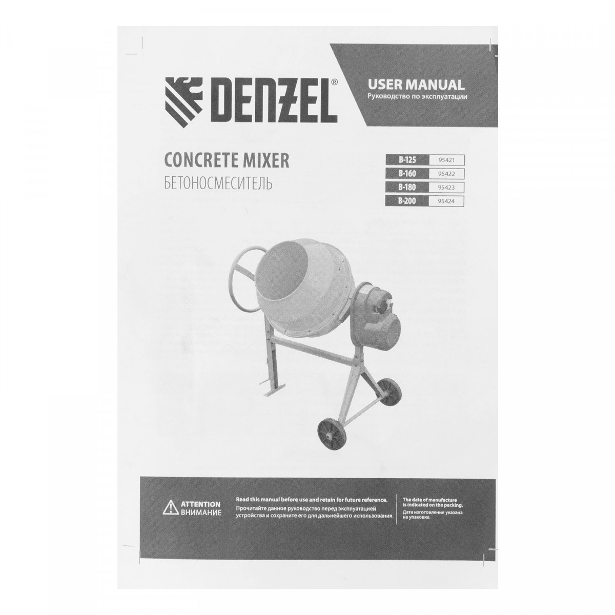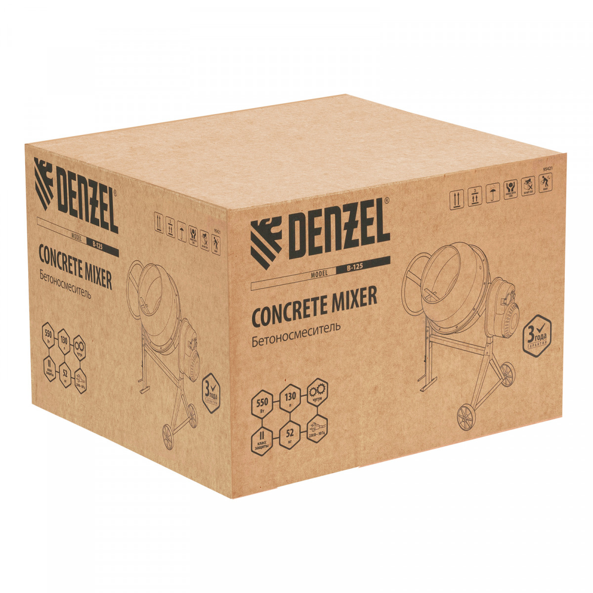 Бетоносмеситель B-125, 550 Вт, 130 л Denzel