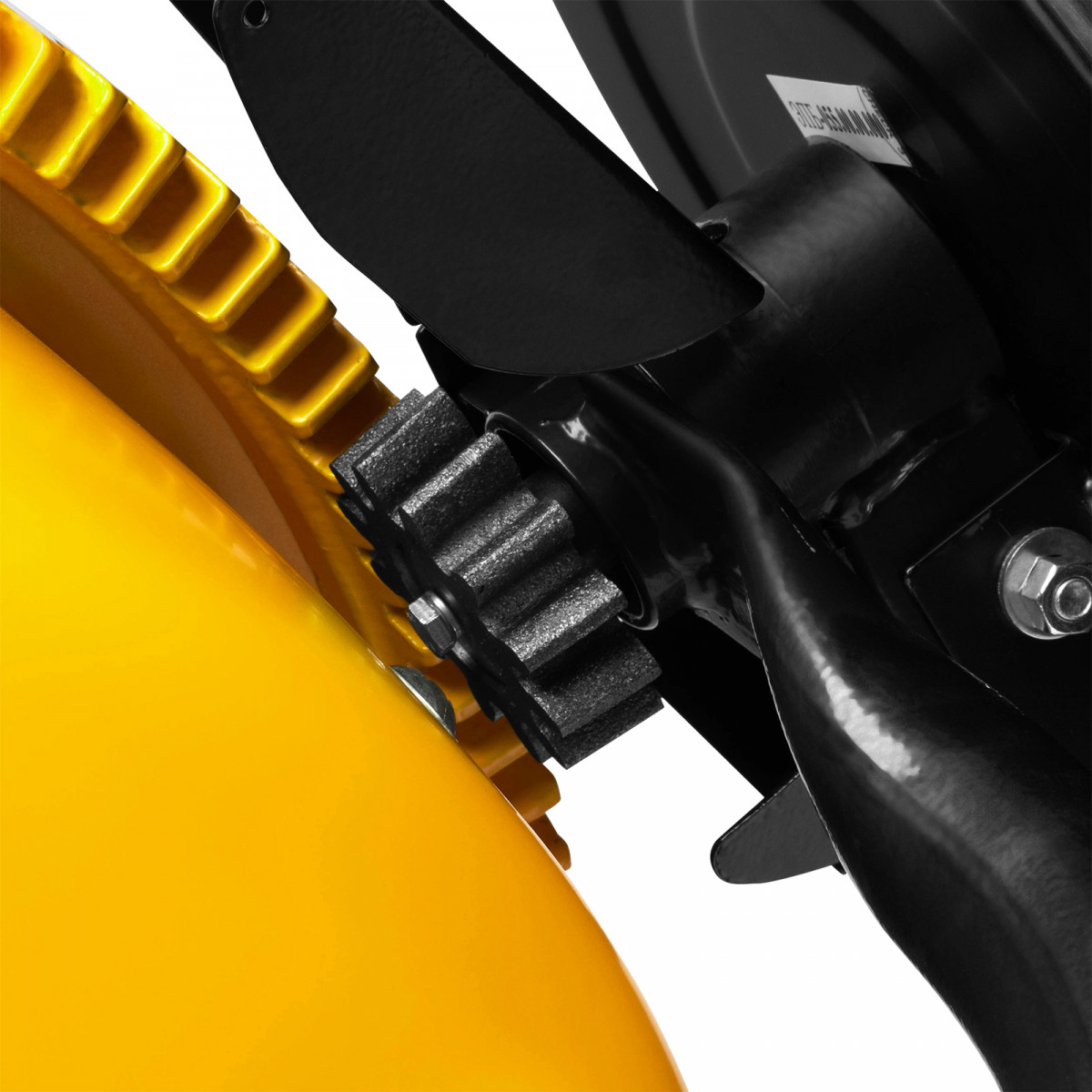 - Безопасная эксплуатация — ведущая шестерня закрыта широким защитным кожухом, предотвращающим затягивание посторонних предметов в привод.