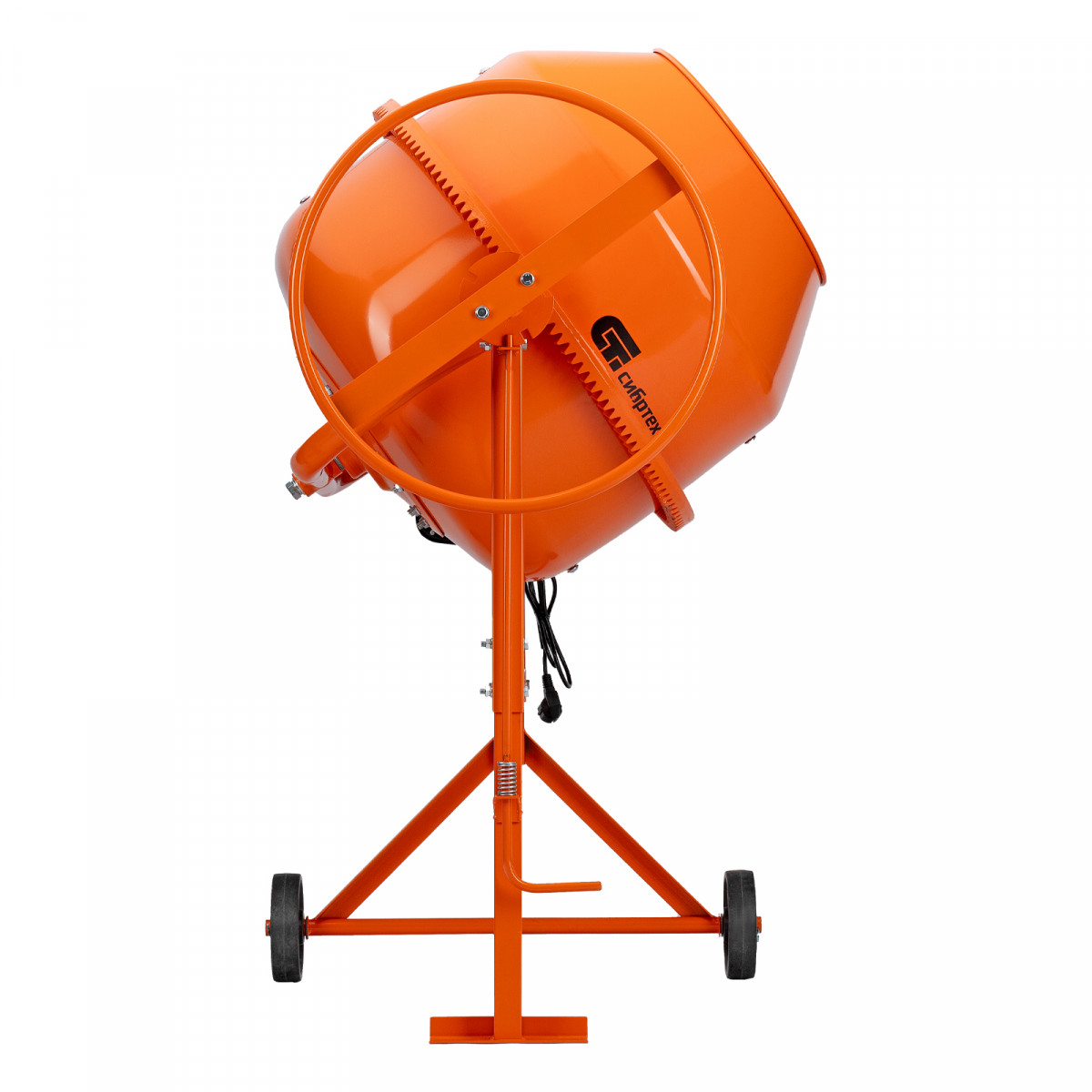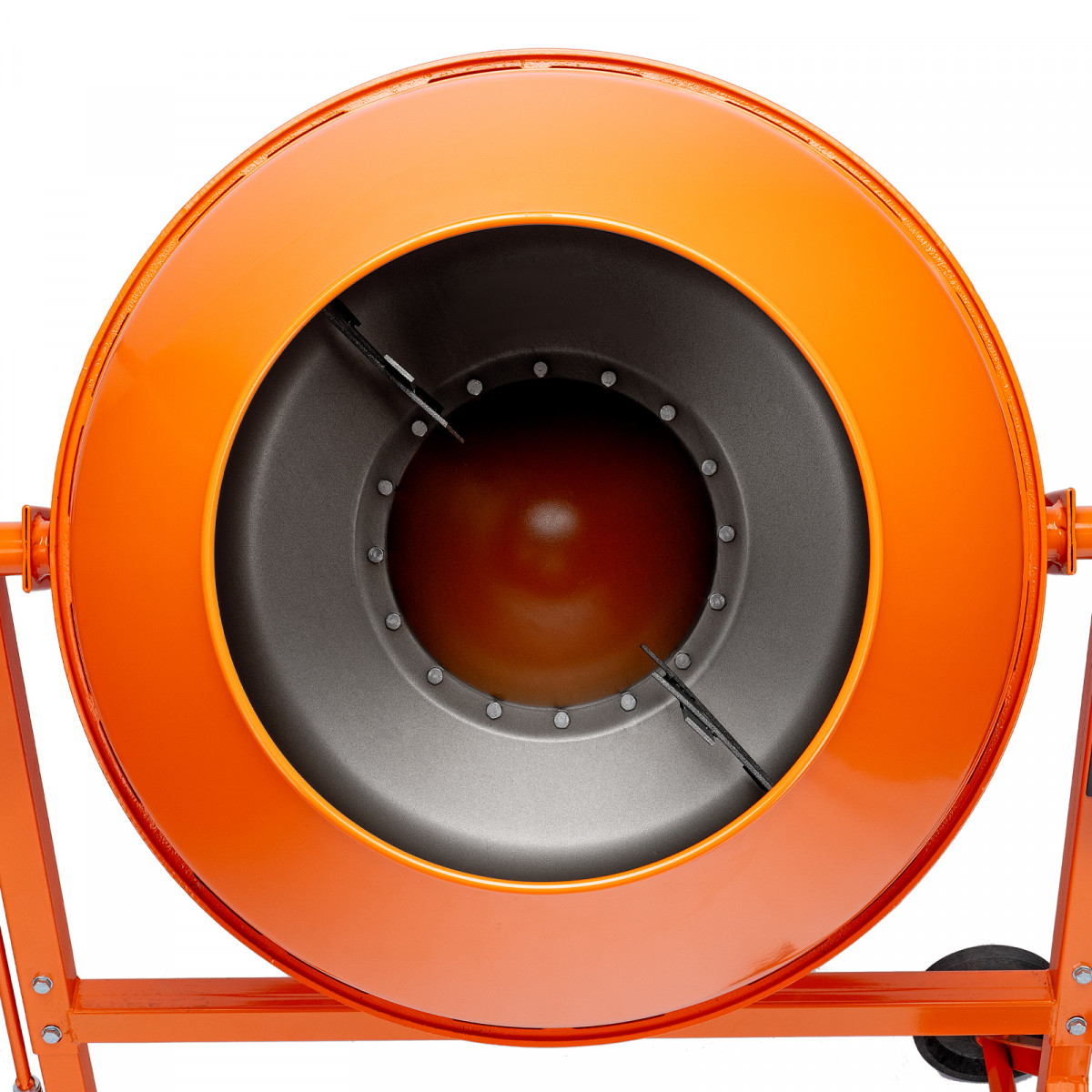 • Удобная загрузка и выгрузка смеси — барабан наклоняется при помощи маховика и легко фиксируется в нужном положении.