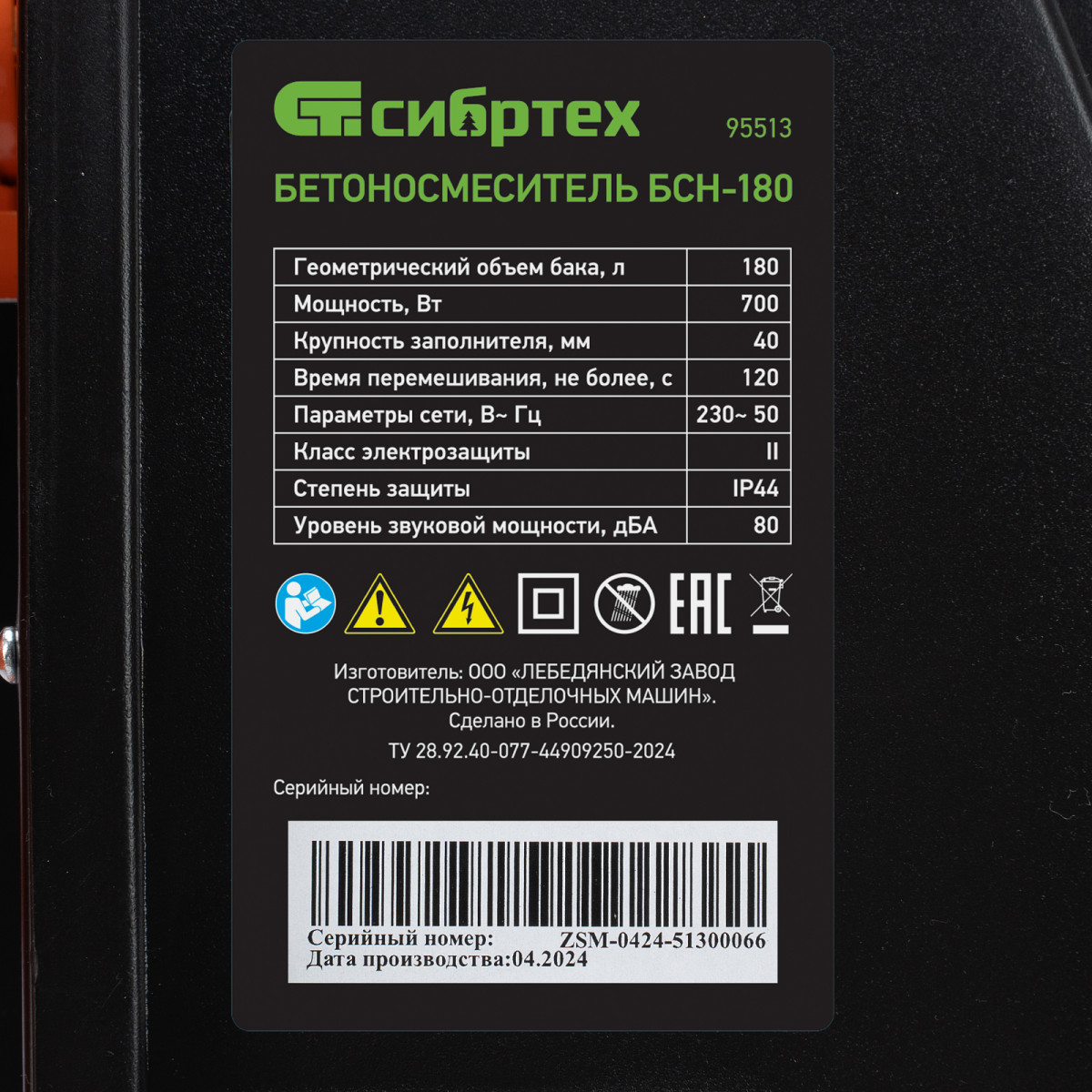 Бетоносмеситель БСН-180, мощность 700 Вт Сибртех