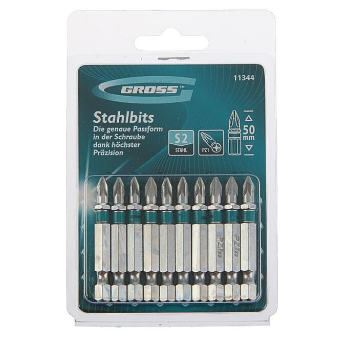 Набор бит PZ1х50, сталь S2, 10шт //GROSS - набор от торговой марки GROSS, предназначенный для использования в качестве насадок в ручном и механическом инструменте. Подходит для использования с дрелями и шуруповертами.