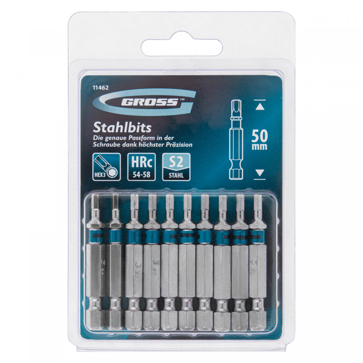 Бита HEX 3 х 50, сталь S2, 10 шт. Gross