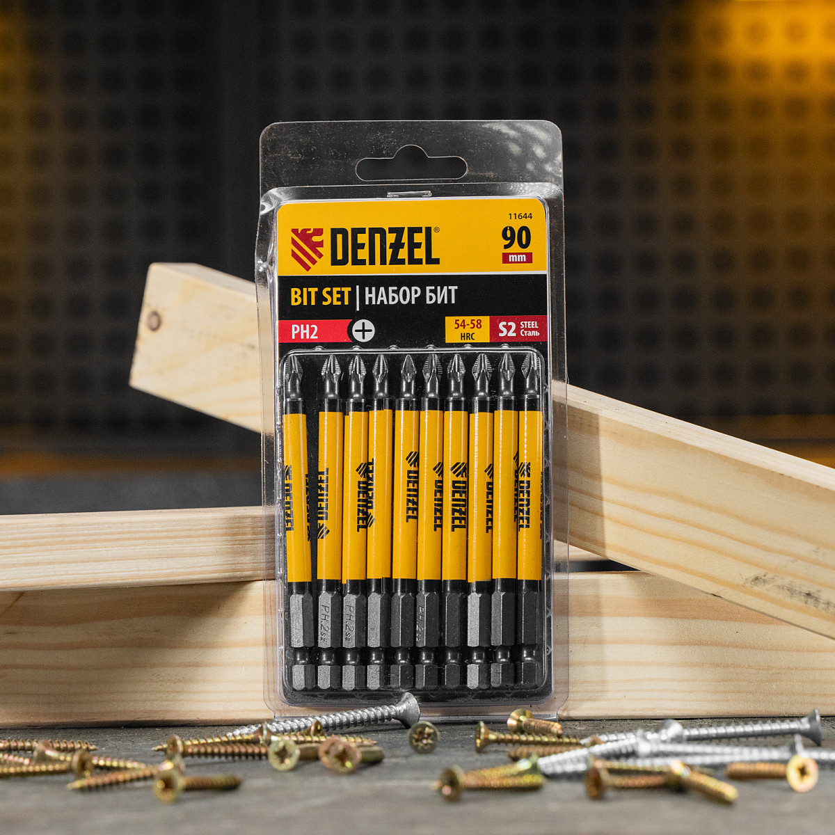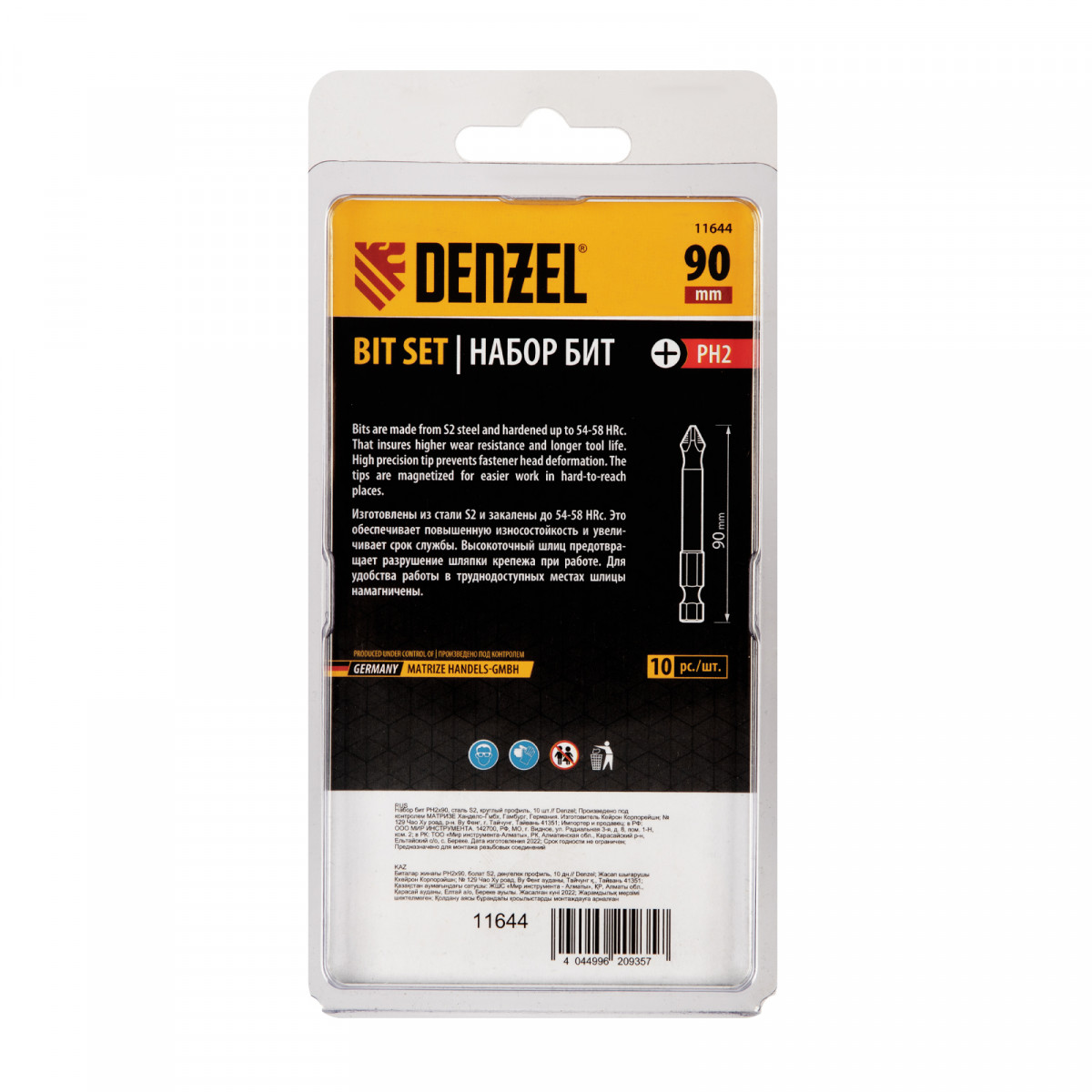 Бита PH2х90, сталь S2, цилиндр., 10 шт. Е 6,3 Denzel