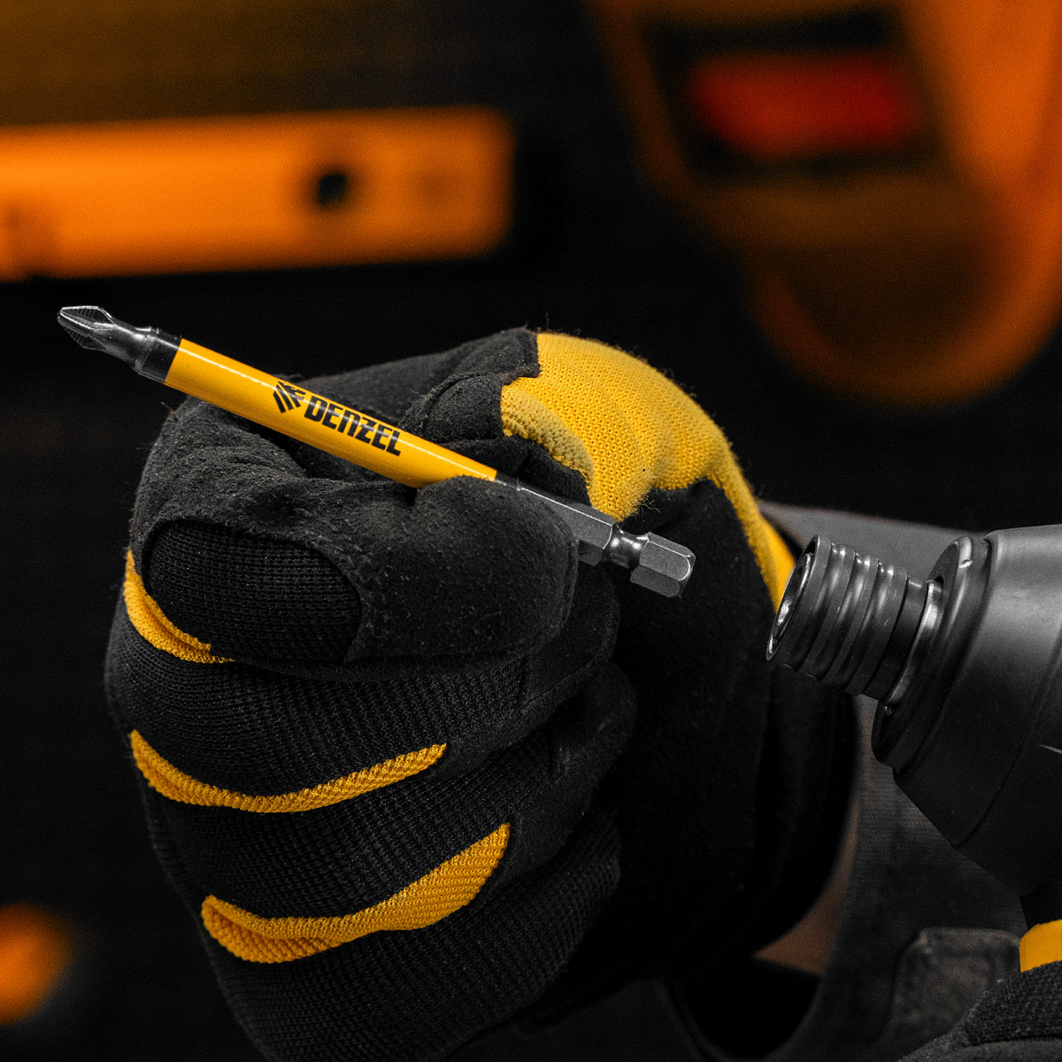 - Высокая результативность даже в ограниченном пространстве — благодаря удлиненному до 90 мм профилю битами удобно работать в труднодоступных местах.