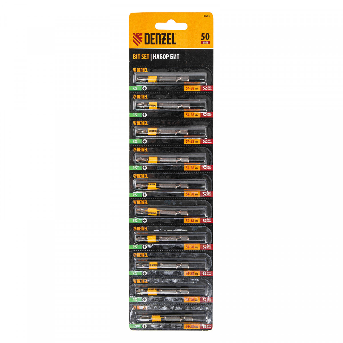 Бита PZ2х50, сталь легированная S2, 10 шт., круглый профиль, отрывная упаковка, , Е 6,3 Denzel