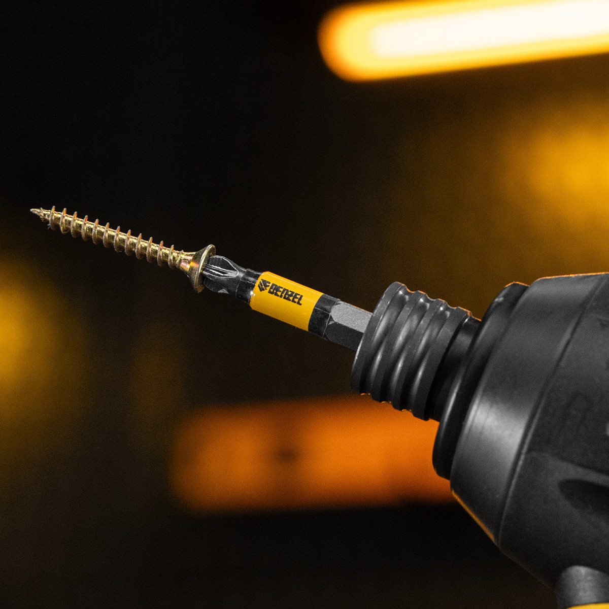 • Защита от подделок — цветное кольцо с логотипом ТМ Denzel на каждой бите подтверждает оригинальность товара.