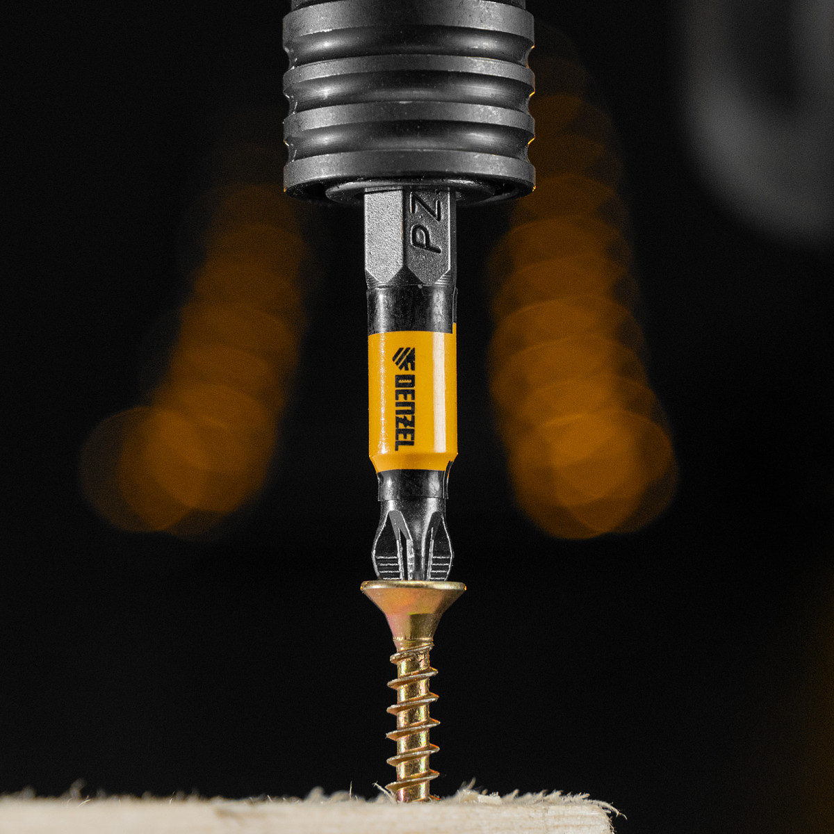 • Удобная эксплуатация — намагниченный шлиц облегчает работу и позволяет направлять шуруповерт с насаженным крепежом одной рукой, а другой придерживать закрепляемую деталь.