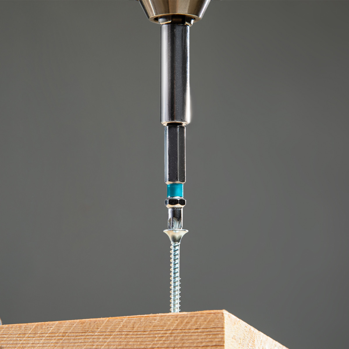 • Намагниченный шлиц — можно направлять шуруповерт с насаженным крепежом одной рукой, а другой придерживать закрепляемую деталь.