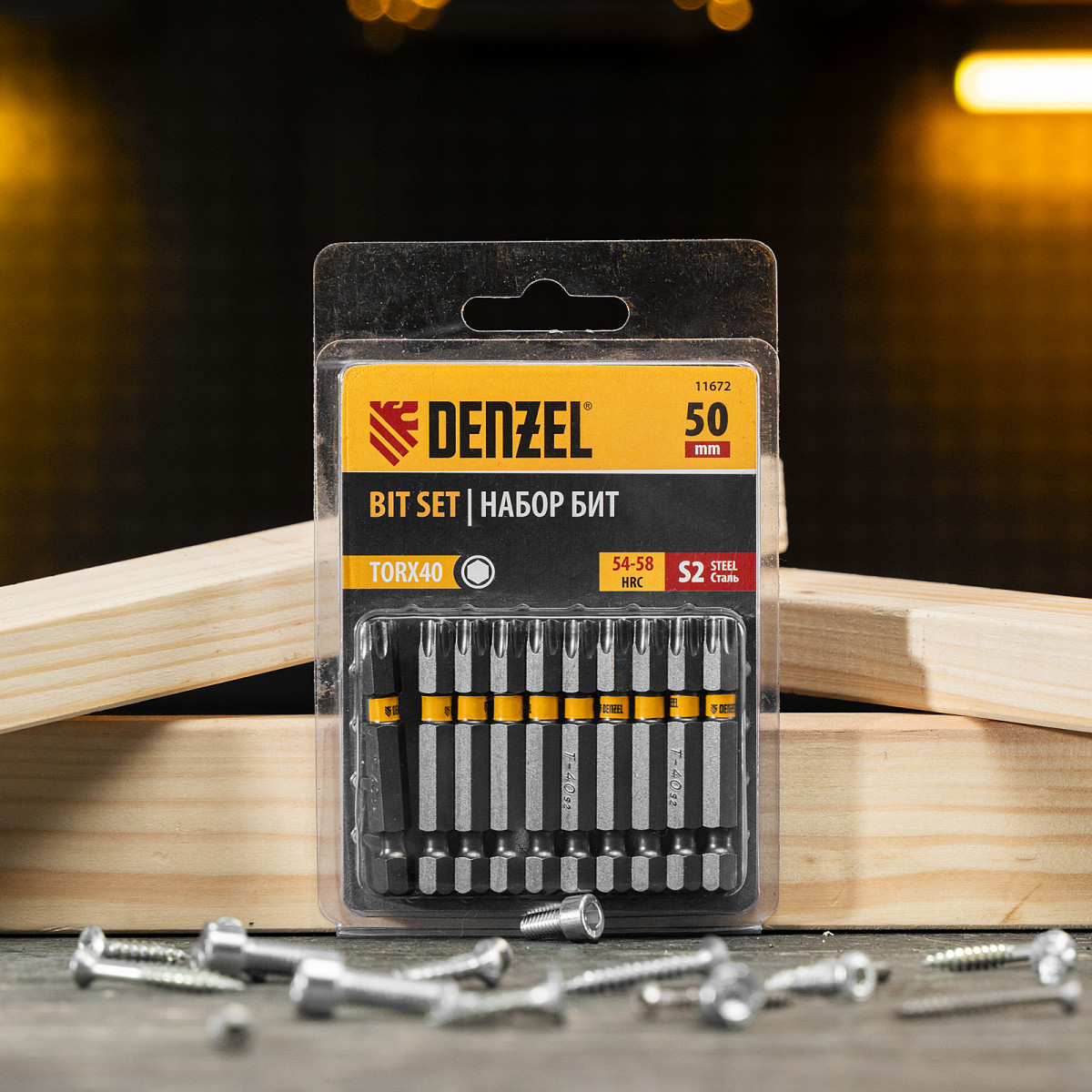 • Каждая бита защищена от подделок — об этом свидетельствует цветное кольцо с логотипом ТМ Denzel.