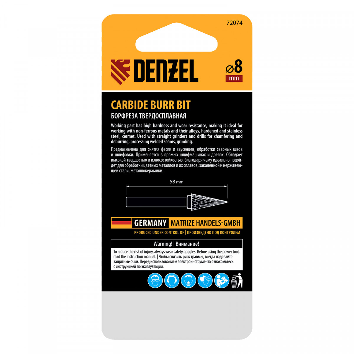 Твердосплавная борфреза по металлу Denzel 72074 с конической рабочей частью (тип M), диаметром 8 мм, — оснастка для дрели и прямошлифовальной машины. Позволяет снимать фаски и удалять заусенцы, идеальна для обработки поверхностей сложной формы, конических отверстий и пазов, а также выполнения точных работ. Подходит для шлифовки деталей из закаленной и нержавеющей стали, чугуна, бронзы, меди, латуни, титана, а также металлокерамики и искусственного камня.