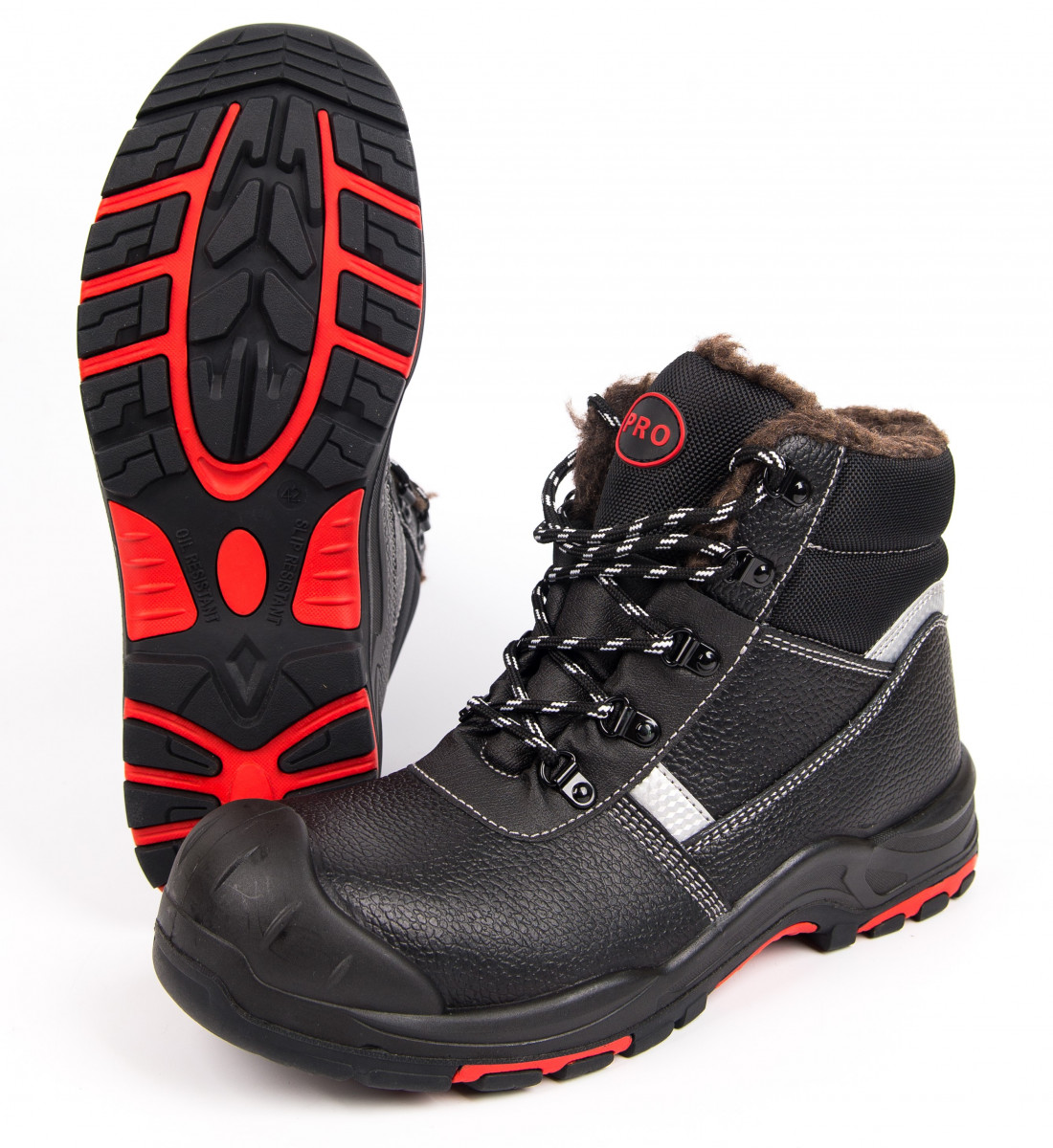 Ботинки PRO шерстяной мех ПУ/НР КП КС Верх обуви: кожа натуральная Подкладка: шерстяной мех Подносок: укрепленный, композитный Мун 200Дж Стелька: антипрокольная кевларовая Подошва: литая, двухслойная ПУ/Нитрил