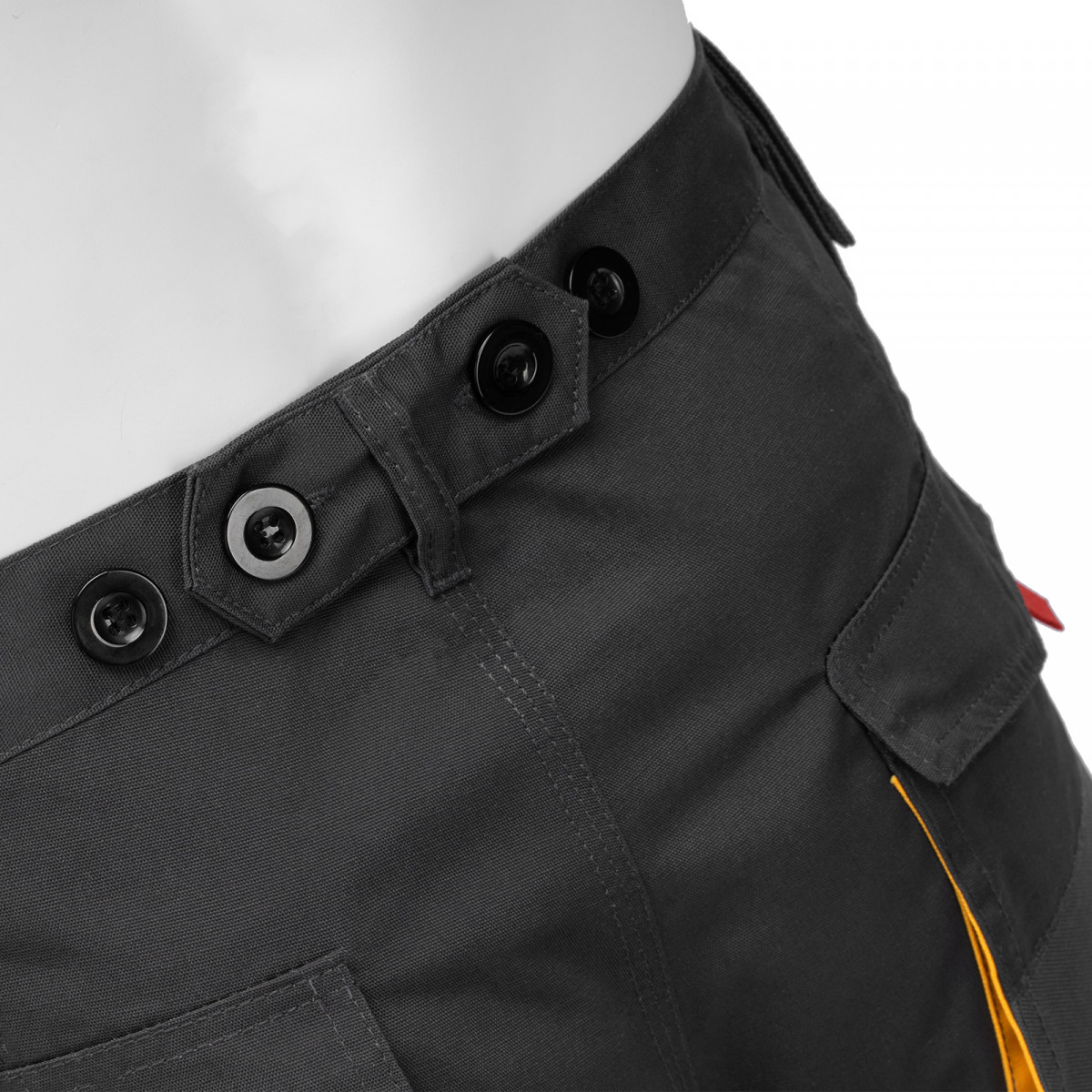 • Комфортное использование — пояс с регулировкой объема талии при помощи пуговиц, со шлевками для ремня, обеспечивает удобную посадку.