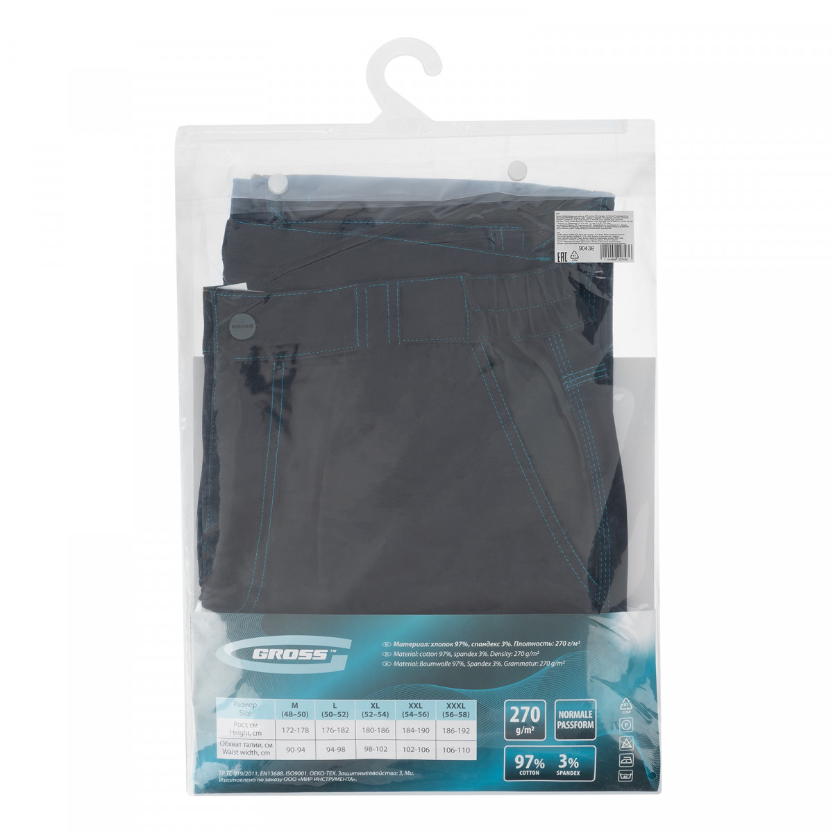 Брюки профессиональные рабочие, 97% хлопок 3% спандекс, L Gross