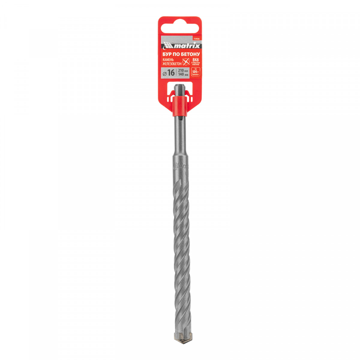 Бур по бетону Matrix 70906 длиной 210 мм, с хвостовиком SDS-plus и крестовой пластиной, предназначен для получения отверстий диаметром 16 мм в бетоне, камне и кирпиче. Крестовая пластина обеспечивает эффективную работу с твердыми материалами, в том числе армированным бетоном. Бур устанавливается в патрон перфоратора и используется во время проведения строительных работ.