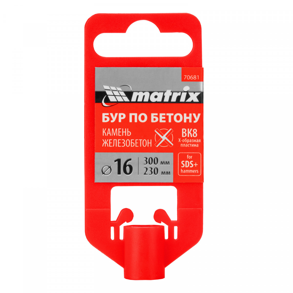 Бур по бетону Matrix 70681 размером 16 х 300 мм используется с перфораторами типа SDS Plus. Используется для получения отверстий в особо твердых поверхностях, таких как бетон, арматура, кирпич, искусственный и натуральный камень. Благодаря твердосплавной пластине с 4 резцами бур успешно справляется с большими объемами работ.
