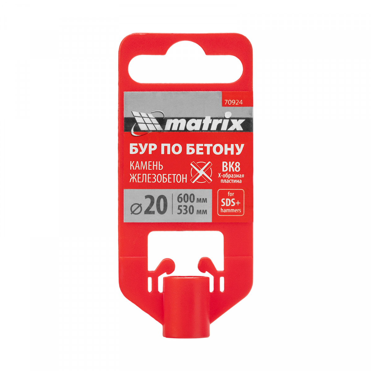 Бур по бетону, 20 x 600 мм, SDS PLUS c крестовой пластиной MATRIX