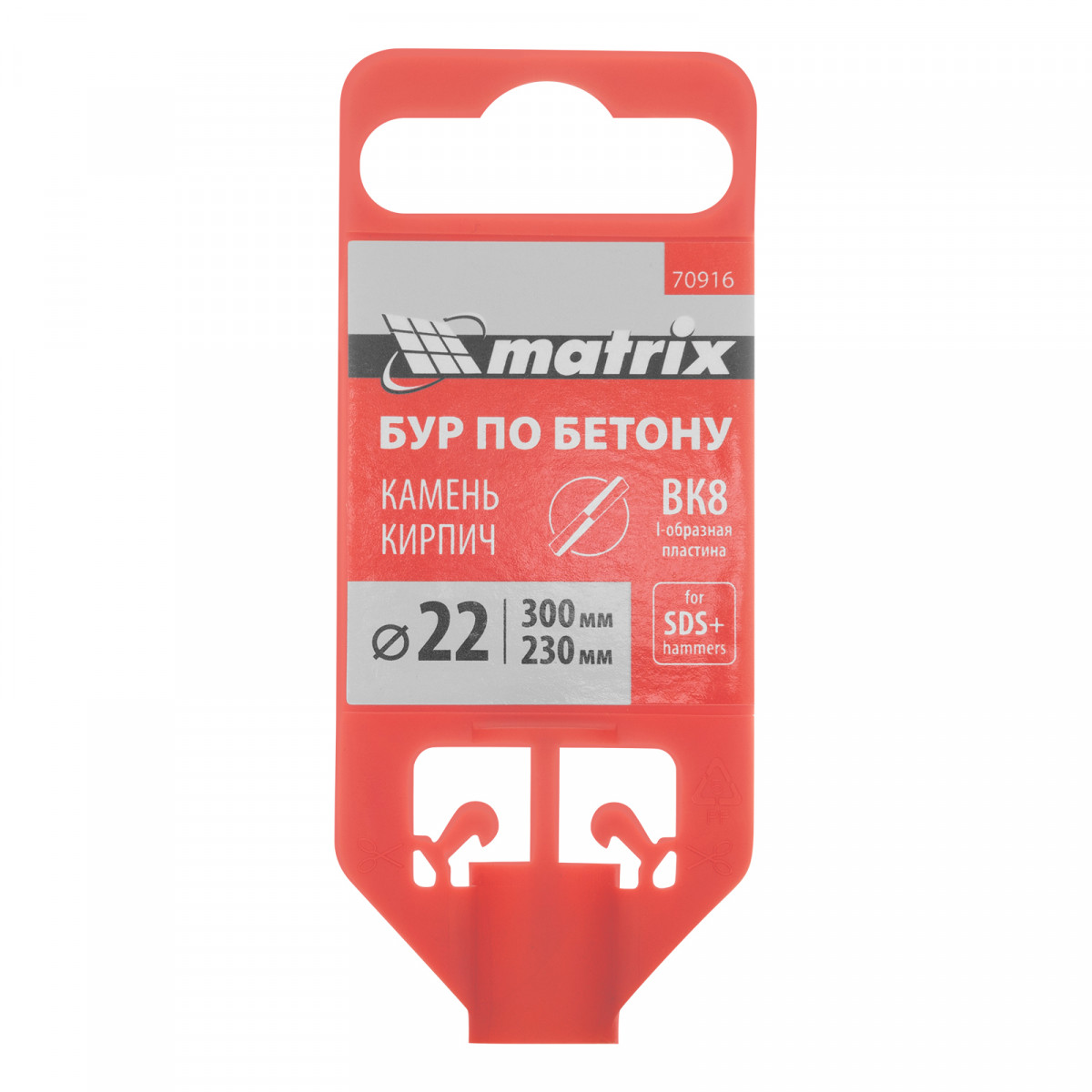 Бур по бетону, 22 х 300 мм, SDS Plus Matrix