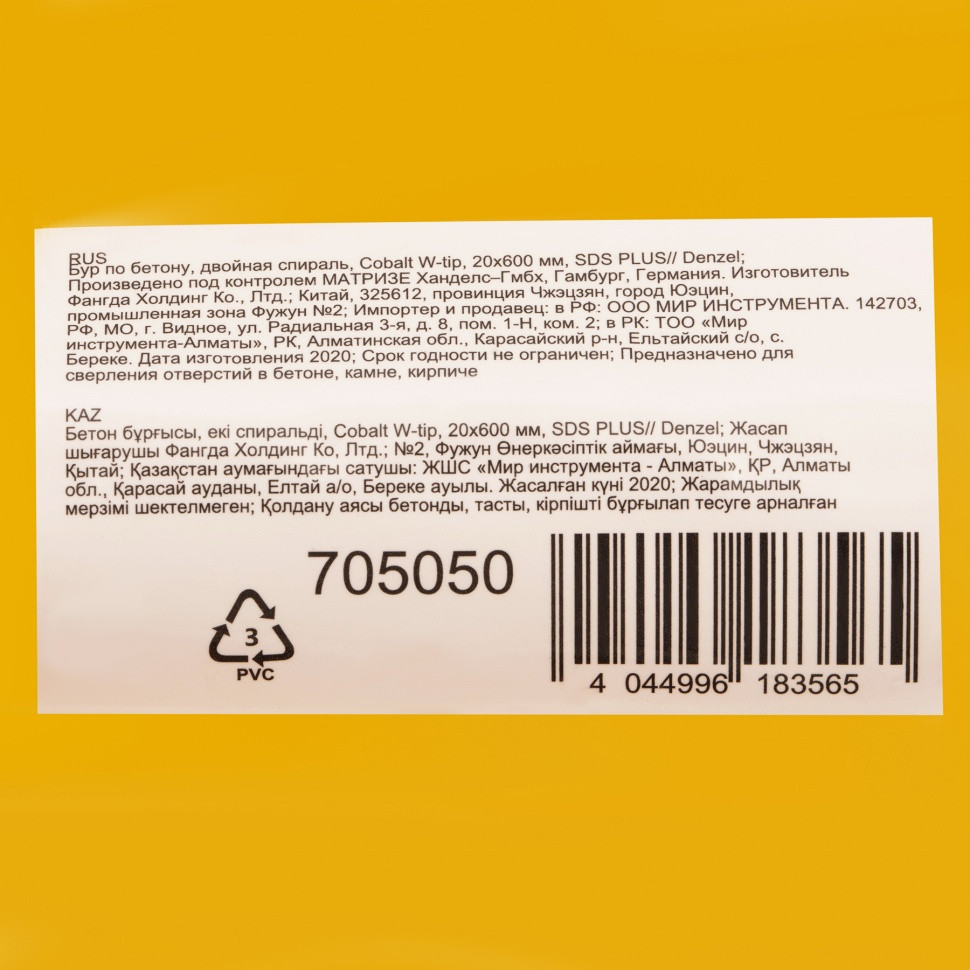Бур по бетону Denzel Cobalt W-tip 705050 размером 20 х 600 мм, с хвостовиком SDS-plus и двойной спиралью, предназначен для сверления бетона, кирпича и камня. Используется в качестве оснастки для перфораторов с патроном SDS-plus. Бур оптимален для проведения строительных, ремонтных, монтажных работ.