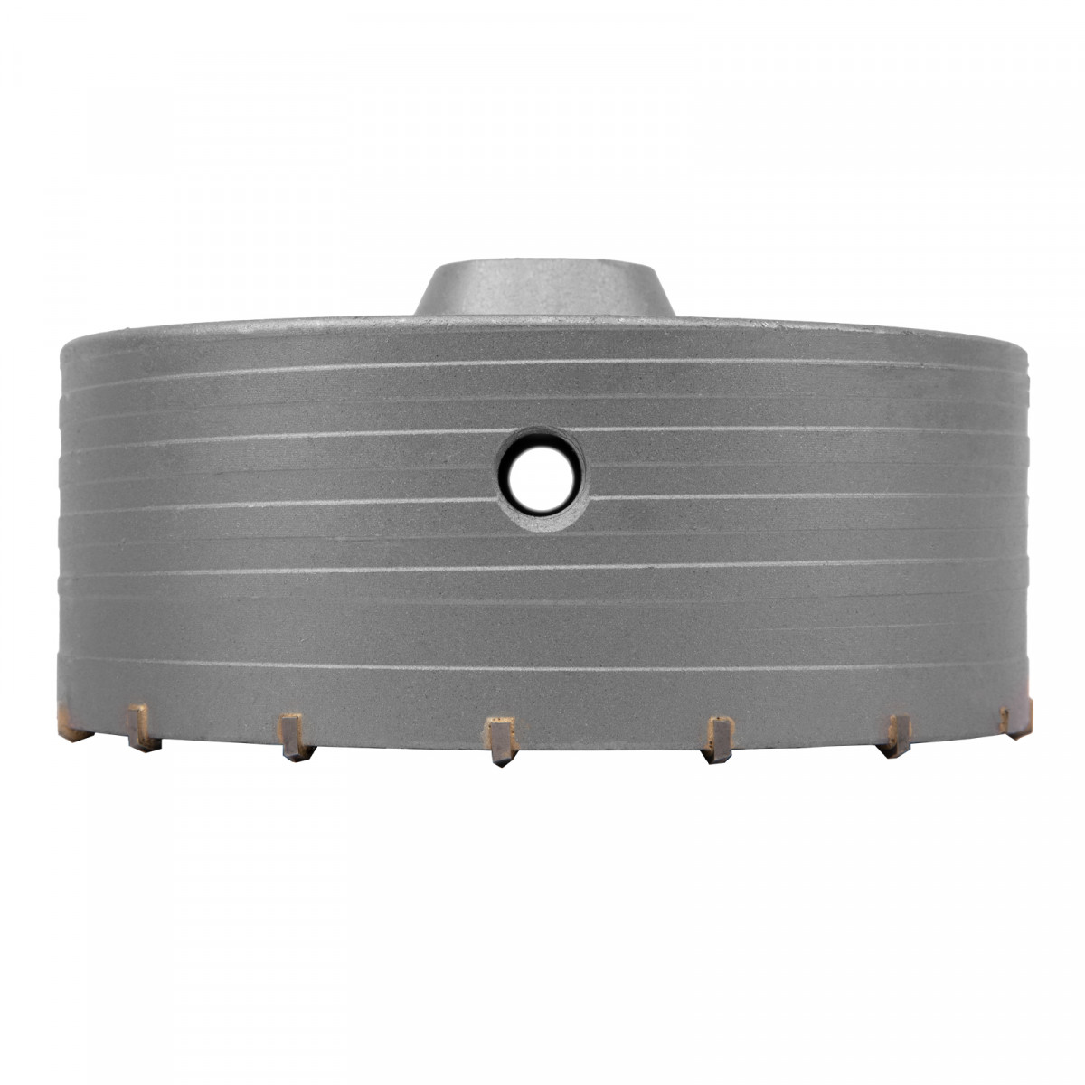 Буровая коронка Matrix 70396 с посадкой M22, диаметром 150 мм, рассчитана на сверление отверстий в бетоне, кирпиче, граните, природном и искусственном камне. Устанавливается на ударные дрели или перфораторы с патронами под хвостовик SDS-Plus или SDS-Max. Коронка позволяет получить большие отверстия, поэтому пригодится для монтажа розеток, выключателей и прокладки труб.