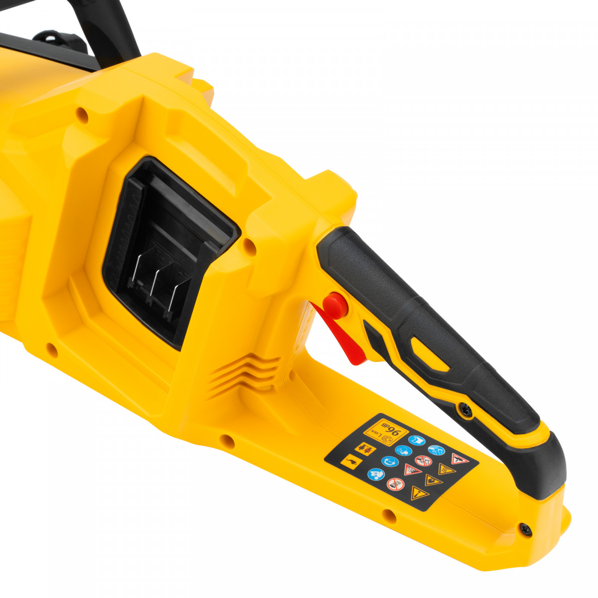 Пила работает на единой платформе Denzel battery system и совместима с аккумуляторами 18 В. Модель поставляется с прочной и легкой шиной OREGON длиной 40 см и цепью с шагом 3/8".