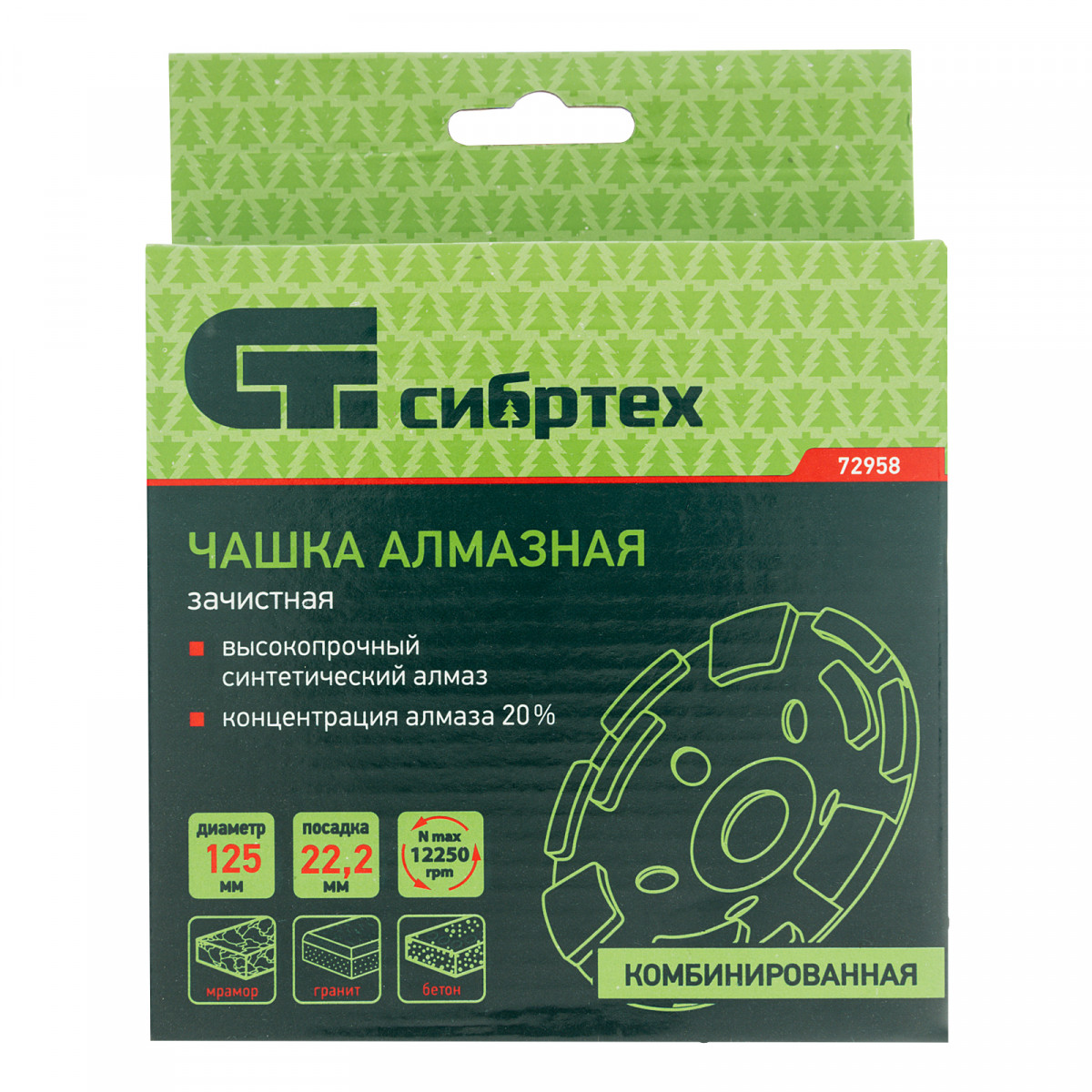 Чашка алмазная зачистная 125 мм, комбинированная Сибртех