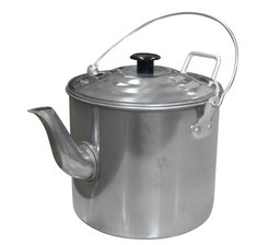 Легкий походный чайник из алюминия объемом 1,8 литра. Может использоваться на костре или горелке. Снабжен дополнительной ручкой для удобства разливания чая.Материал: алюминий.Толщина стенок: 0,6 мм.Габариты (см): 0,178x0,18x0,164.