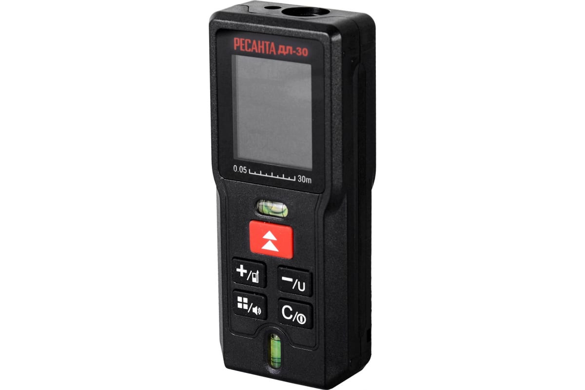 Дальномер Ресанта ДЛ-30 61/10/519 пригодится при строительных и ремонтных работах. Имеет функции определения расстояния, вычисления площади, объема и третьей стороны прямоугольного треугольника. Погрешность - не более 2 мм.Возможна установка единиц измерения: в метрах, дюймах, десятичных и дробных футах.Прибор обладает внутренней памятью на 20 значений.