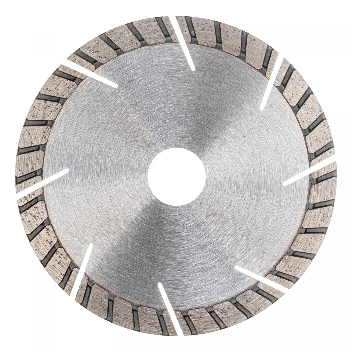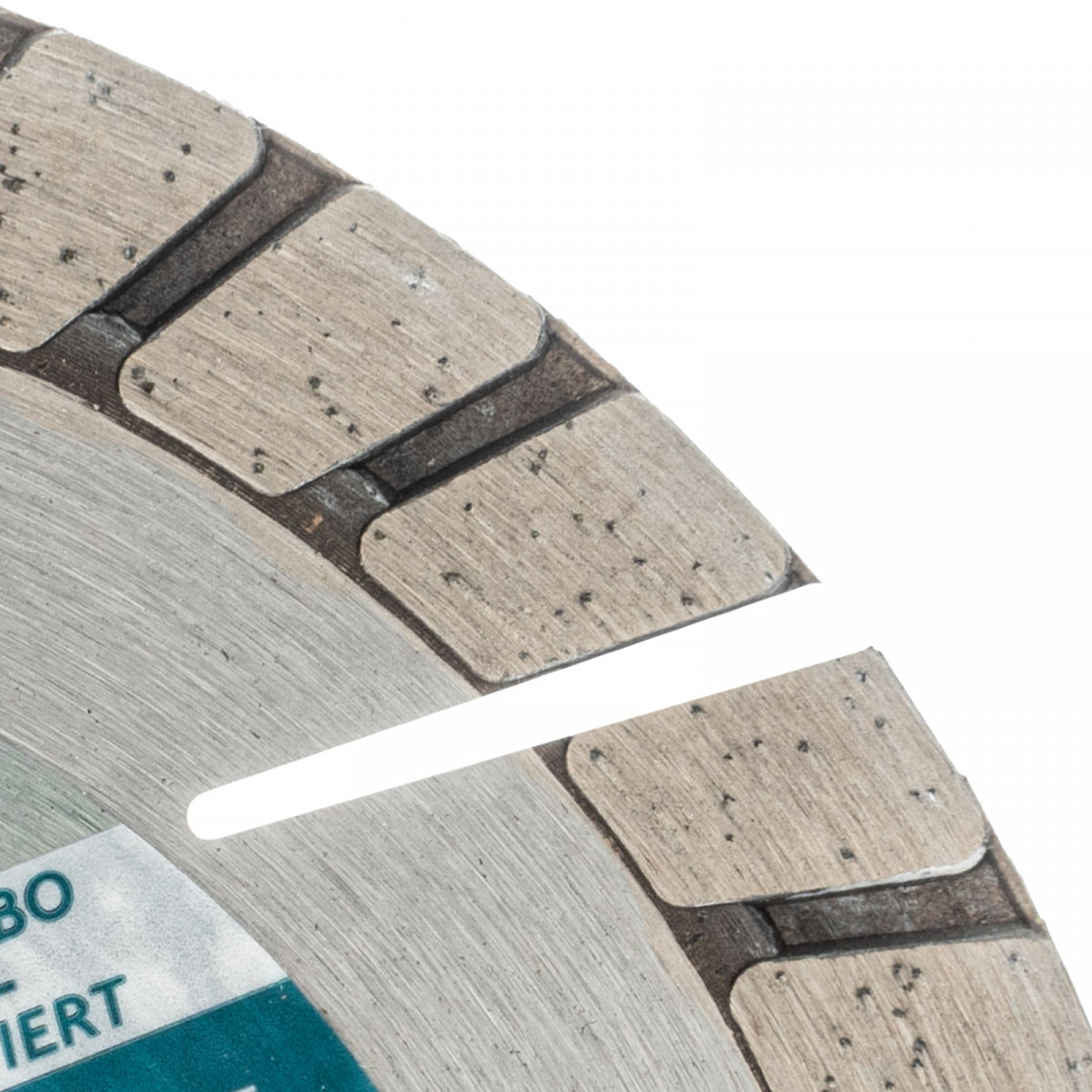 • Эффективная работа — благодаря турбо-сегментной форме диск быстро режет материалы, в т.ч. армированный бетон, водяное охлаждение не требуется.