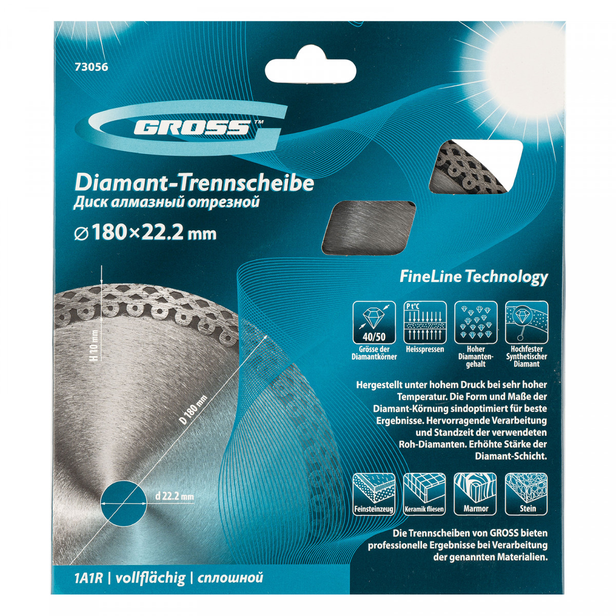Диск алмазный, 180 х 22.2 мм, тонкий, сплошной (Jaguar) мокрая резка Gross