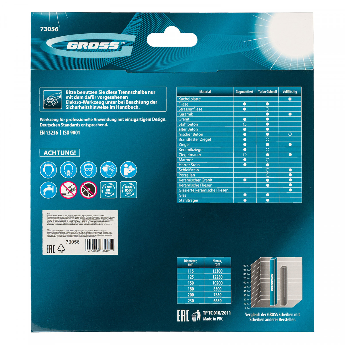• Надежность — диск изготовлен методом горячего прессования, тщательно подобранная металлическая связка содержит кобальт, серебро и другие компоненты, обеспечивающие устойчивость к перегреву и высоким нагрузкам.