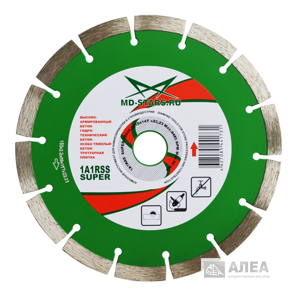 Диск алмазный 1A1RSS SUPER от MD-STARS станет надежным помощником любому мастеру. Отлично справится с резкой таких материалов как: слабоармированный бетон, гидротехнический бетон, особотяжелый бетон, тротуарная плитка. В процессе работы не нуждается в охлаждении водой (сухой рез).