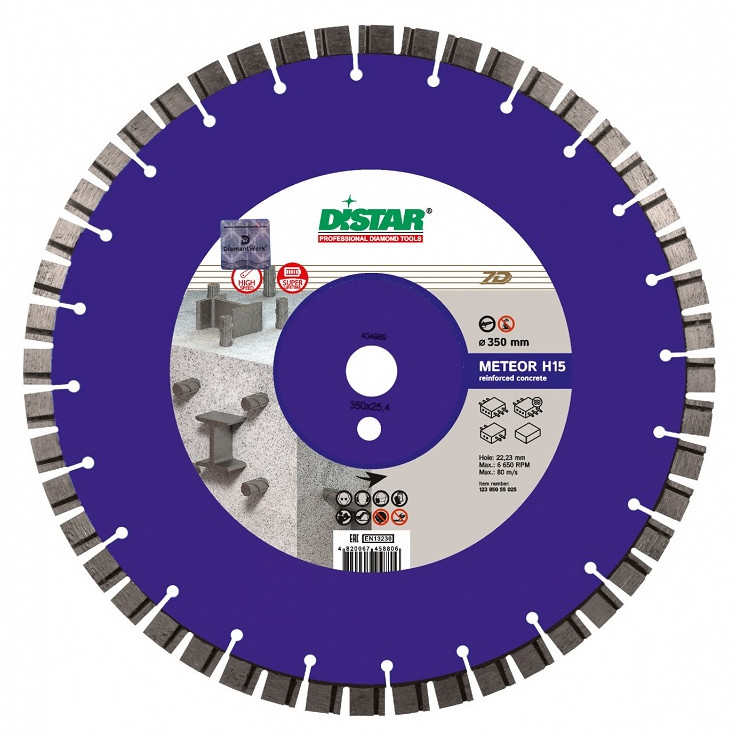 Продукция LP 40H 1A1 RSS / C3-W 350 х 3,2 / 2,2 х 12 х 25,4-25 F4 «Ди-Стар» Meteor представляет собой профессиональный круг для нарезания армобетона и других видов бетона без применения охлаждения.