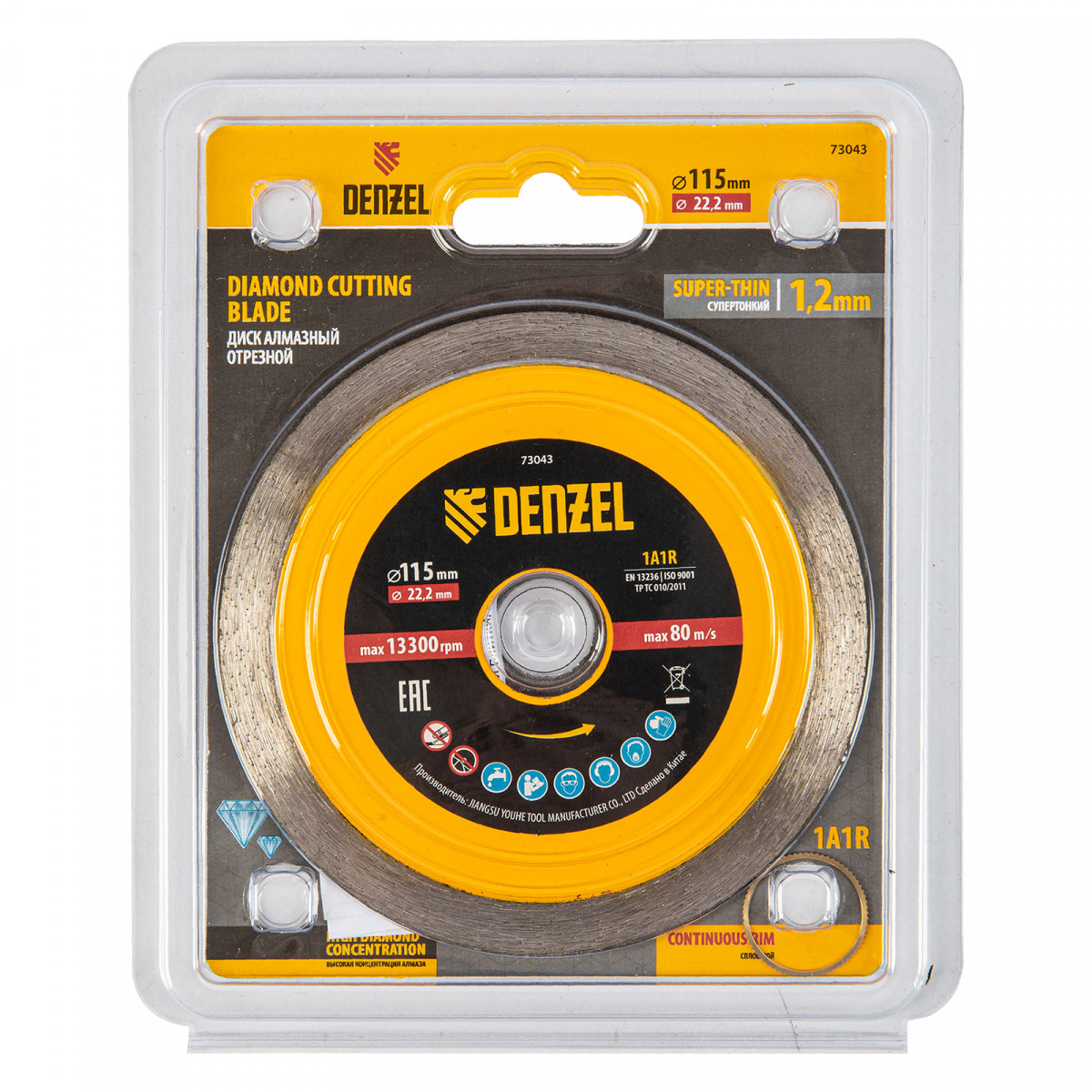 Диск алмазный отрезной 115 х 22,2 мм, сплошной, супертонкий, горячий пресс, мокрое резание Denzel