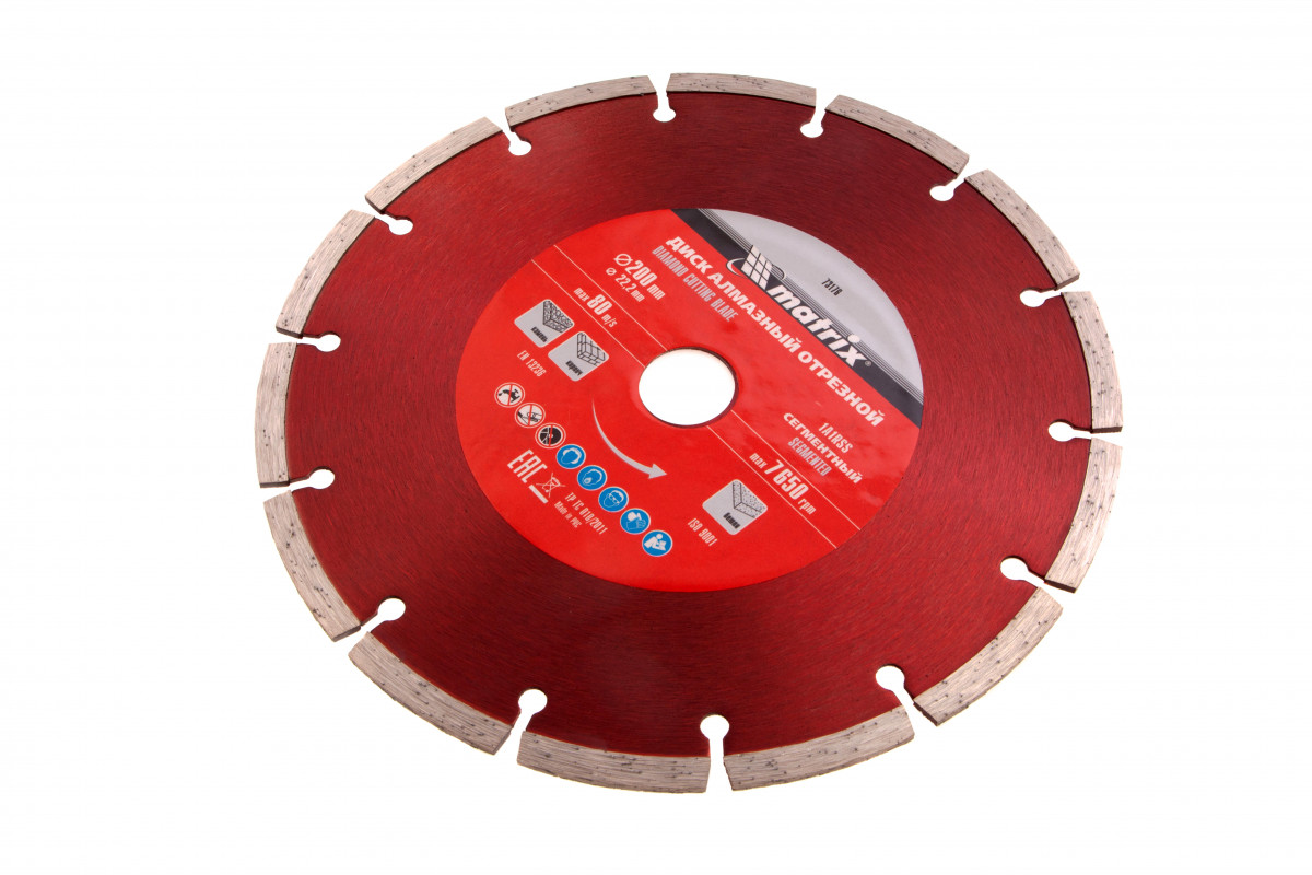 Диск алмазный, отрезной сегментный, 200 х 22.2 мм, сухая резка Matrix Professional