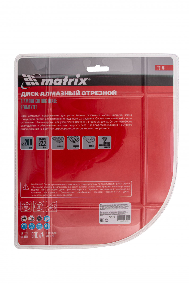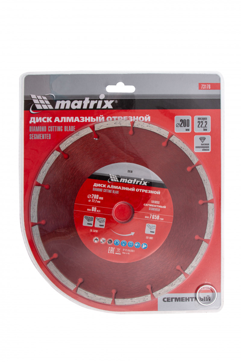 Алмазный отрезной сегментный диск Matrix 73176 диаметром 200 х 22,2 мм предназначен для сухой резки натурального и искусственного камня, кирпича, свежего и твердого бетона. Применяется с углошлифовальными машинами соответствующего типоразмера. Благодаря высокой скорости реза диск позволяет выполнять работы большого объема. Он пригодится на небольших строительных площадках и будет идеальным помощником при решении бытовых задач.