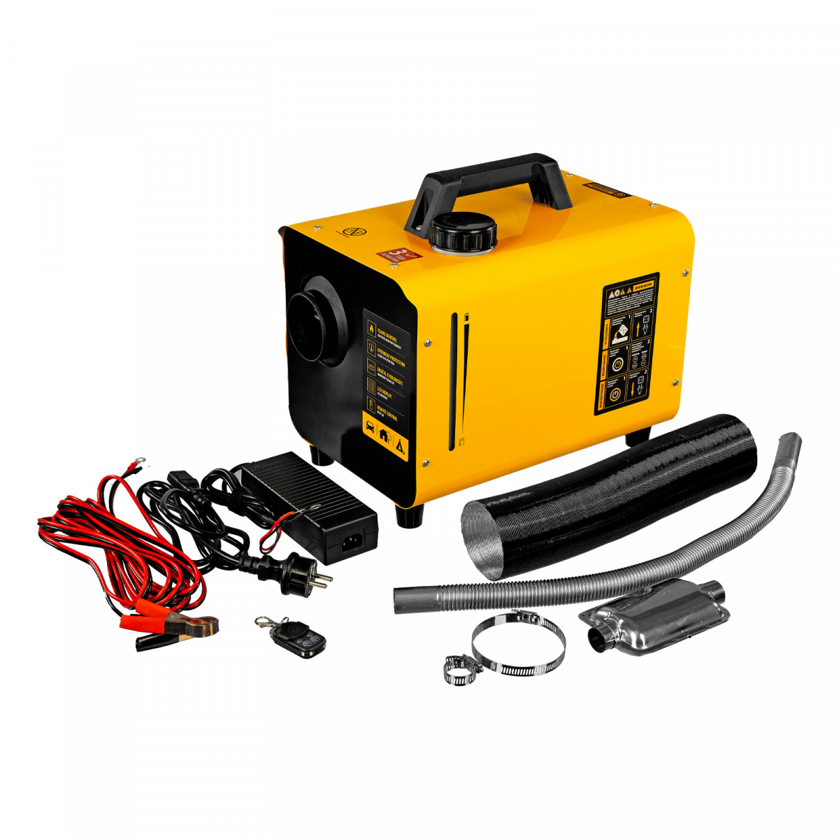 • Полная комплектация — к пушке прилагаются гофротруба и труба для отвода выхлопных газов, кабель питания от аккумулятора с клеммами 5 м, блок питания от сети 230 В (длина шнура 3 м), хомуты и глушитель.