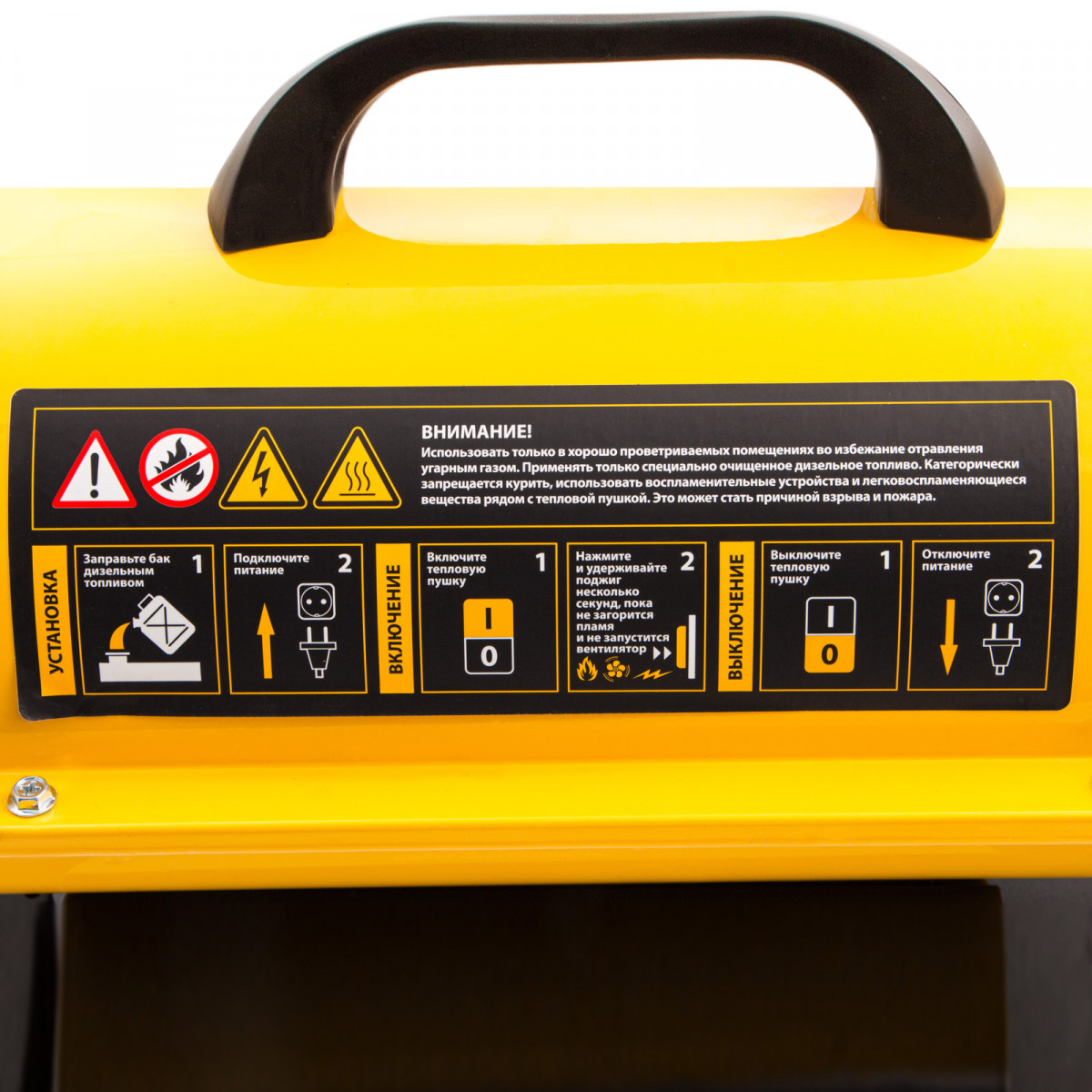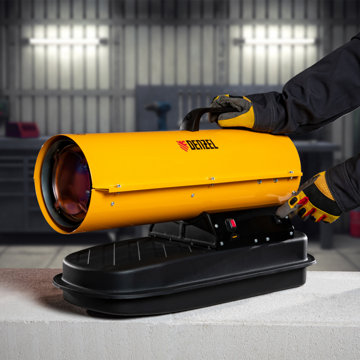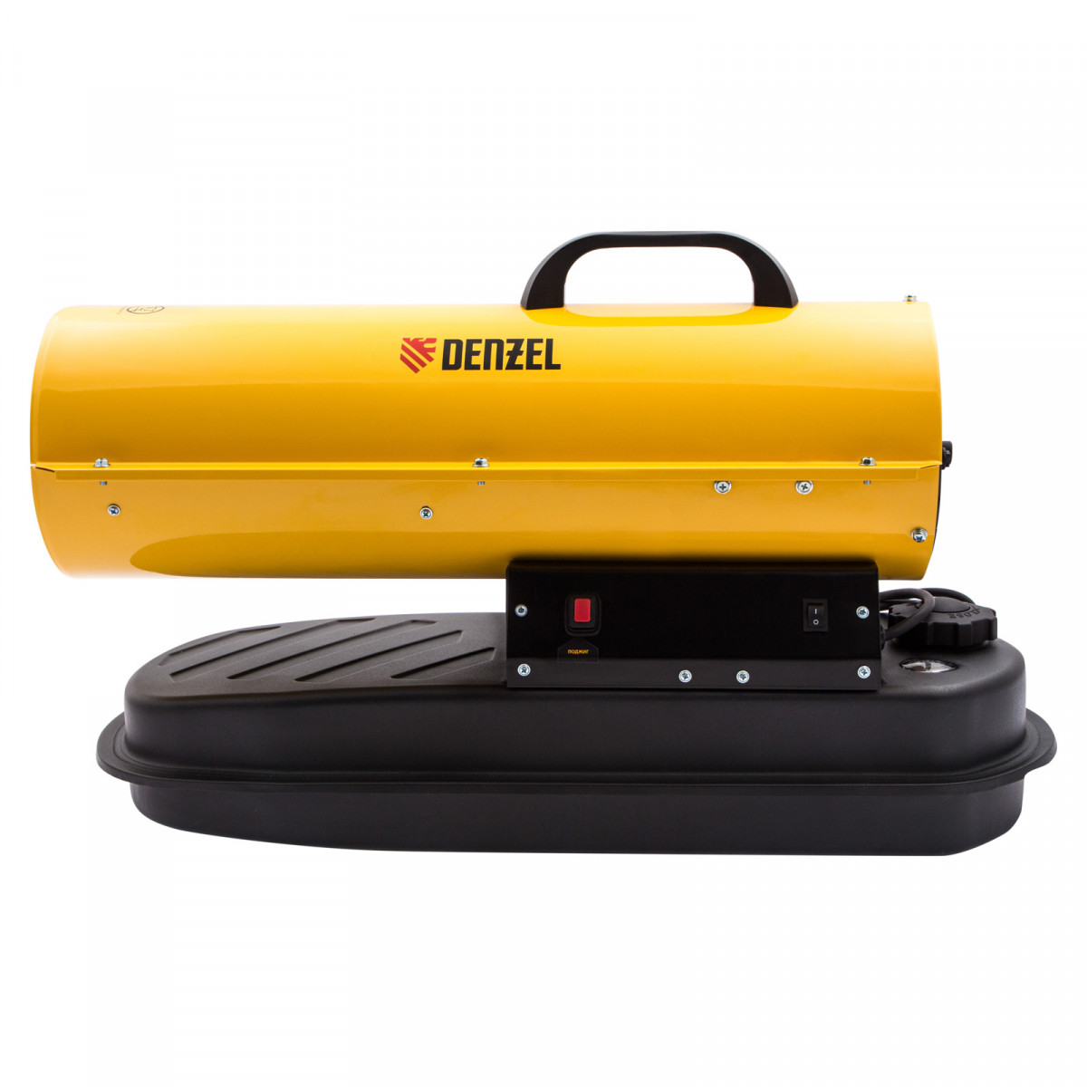 Дизельная тепловая пушка Denzel DHG-10 96481 мощностью 10 кВт и производительностью 300 куб. м/ч предназначена для прямого нагрева воздуха в цехах, ангарах, хранилищах и других нежилых помещениях с хорошей вентиляцией. Максимальная площадь обогрева составляет 100 кв. м. Пушка служит эффективным источником тепла в полярных экспедициях. Пригодится также на строительной площадке для прогрева бетона, просушки стен и разморозки траншей. Для заправки может использоваться любое дизельное топливо: летнее, зимнее и арктическое. Преимущества Встроенная система безопасности — подача топлива прекращается в случае затухания пламени, перегрева и отключения питания. Эффективность — благодаря системе прямого нагрева и теплоотражающему экрану воздух в помещении прогревается быстро и равномерно. Низкий расход топлива — продолжительность работы без дозаправки составляет 12 часов. Датчик уровня топлива — своевременная заправка бака позволяет избежать перерывы в работе. Защита от засорения — встроенный фильтр грубой очистки препятствует попаданию в топливную систему посторонних частиц. Подтвержденное качество — на устройство действует гарантия 3 года.