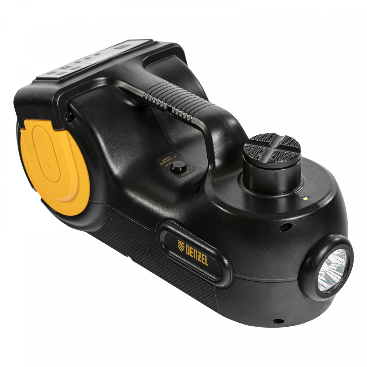 Электрогидравлический домкрат «3 в 1» Denzel 51190 в наборе с электрическим гайковертом работает от сети 12 В и представляет собой устройство для подъема грузов массой до 1,5 т на высоту 155-455 мм. Встроенный компрессор производительностью 35 л/мин служит для подкачки шин, мячей, матрацев и других резиновых изделий. Гайковерт с переключателем направления вращения позволяет откручивать и закручивать резьбовой крепеж во время замены колес. Набор будет полезен в гараже, автомастерской, также пригодится водителям в поездке.