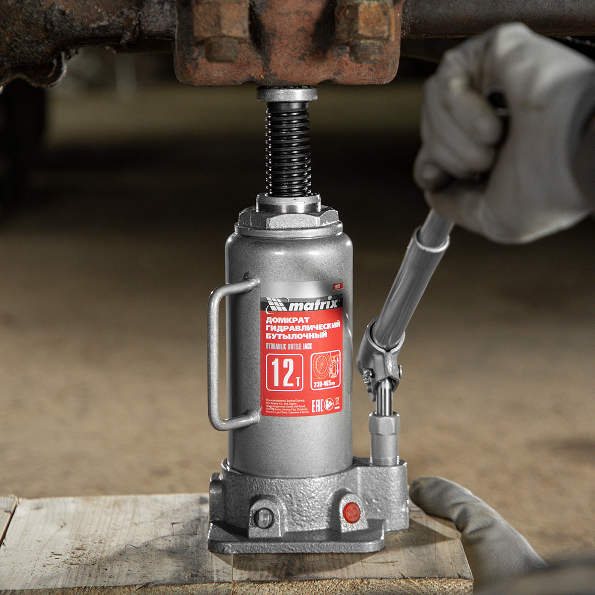 Домкрат гидравлический бутылочный Matrix 50727 используется для поднятия грузов массой до 12 т на высоту 230-465 мм. Подходит для автомобилей с высоким клиренсом. Домкрат будет полезен автолюбителям в гараже и дороге, а также сотрудникам СТО.