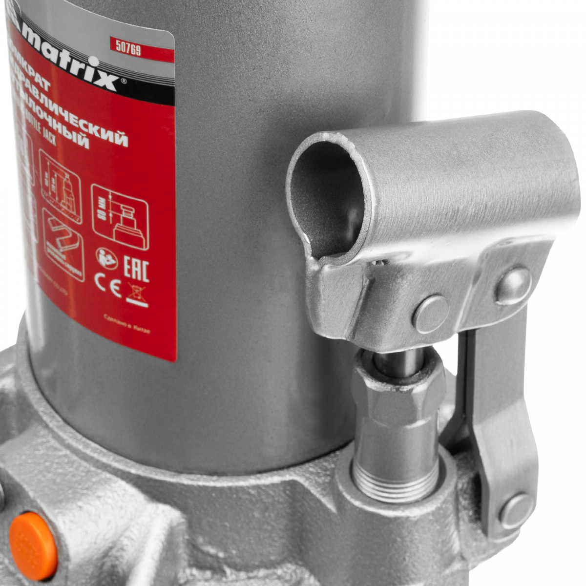 Гидравлический бутылочный домкрат Matrix 50769 предназначен для быстрого поднятия грузов массой до 16 т на высоту 230-460 мм. Будет полезен автолюбителям и мастерам СТО в качестве полупрофессионального инструмента. Встроенный магнитный уловитель металлической стружки защищает резиновые уплотнители от повреждений.