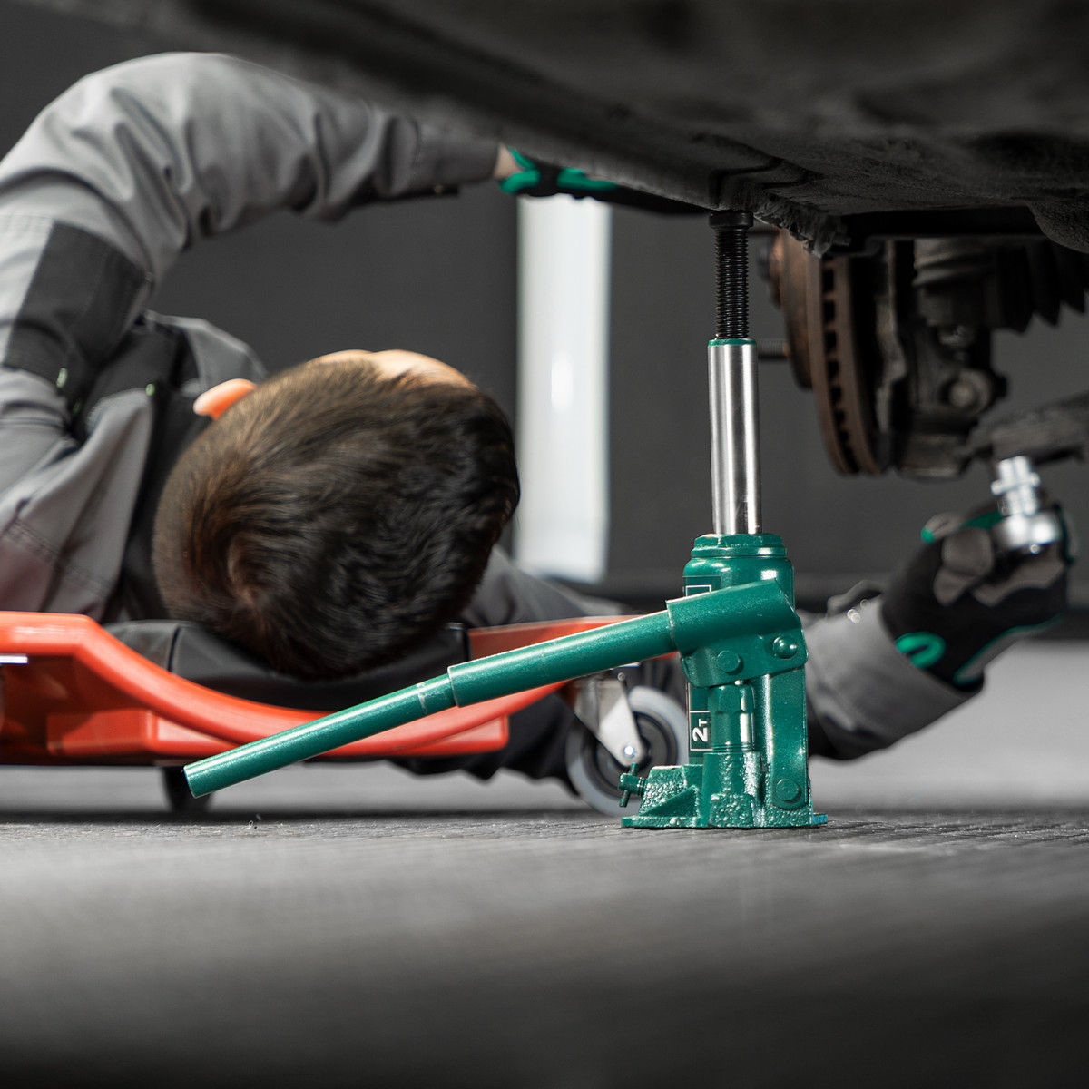 • Удобное хранение и транспортировка — домкрат весит всего 1,9 кг и поставляется в прочном пластиковом кейсе с рукояткой.