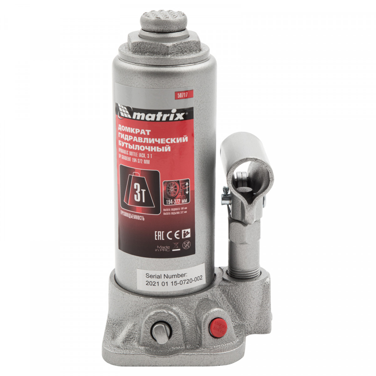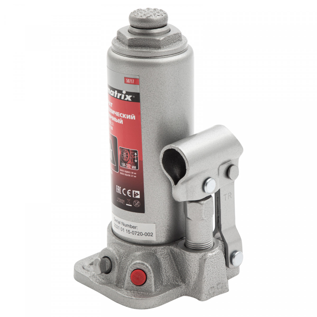 Домкрат гидравлический бутылочный, 3 т, высота подъема 194-372 мм Matrix
