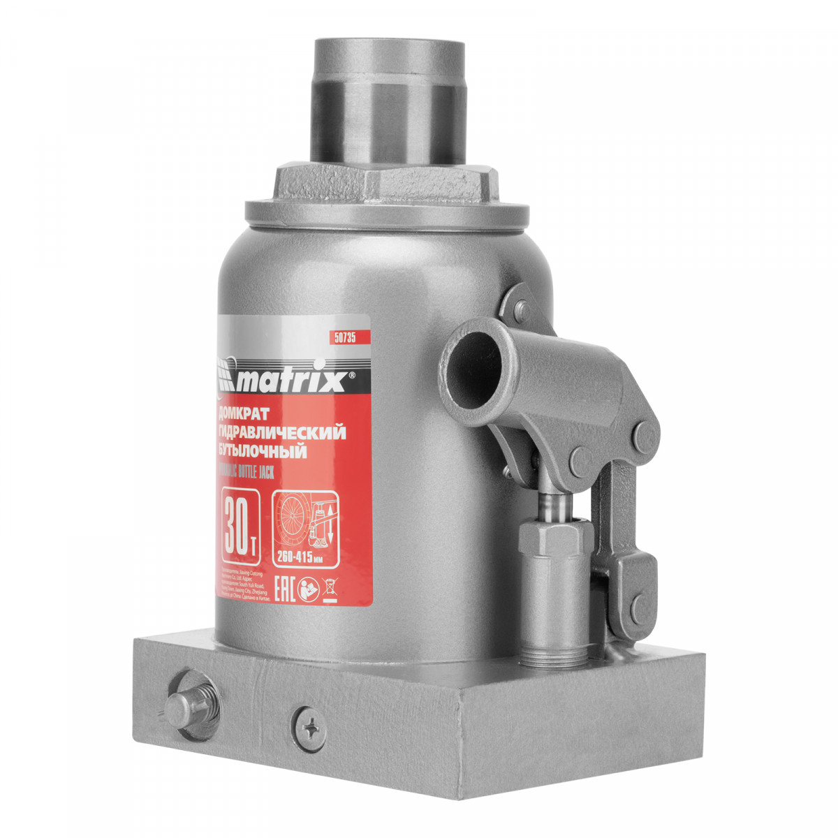 Домкрат гидравлический бутылочный, 30 т, высота подъема 260-415 мм Matrix