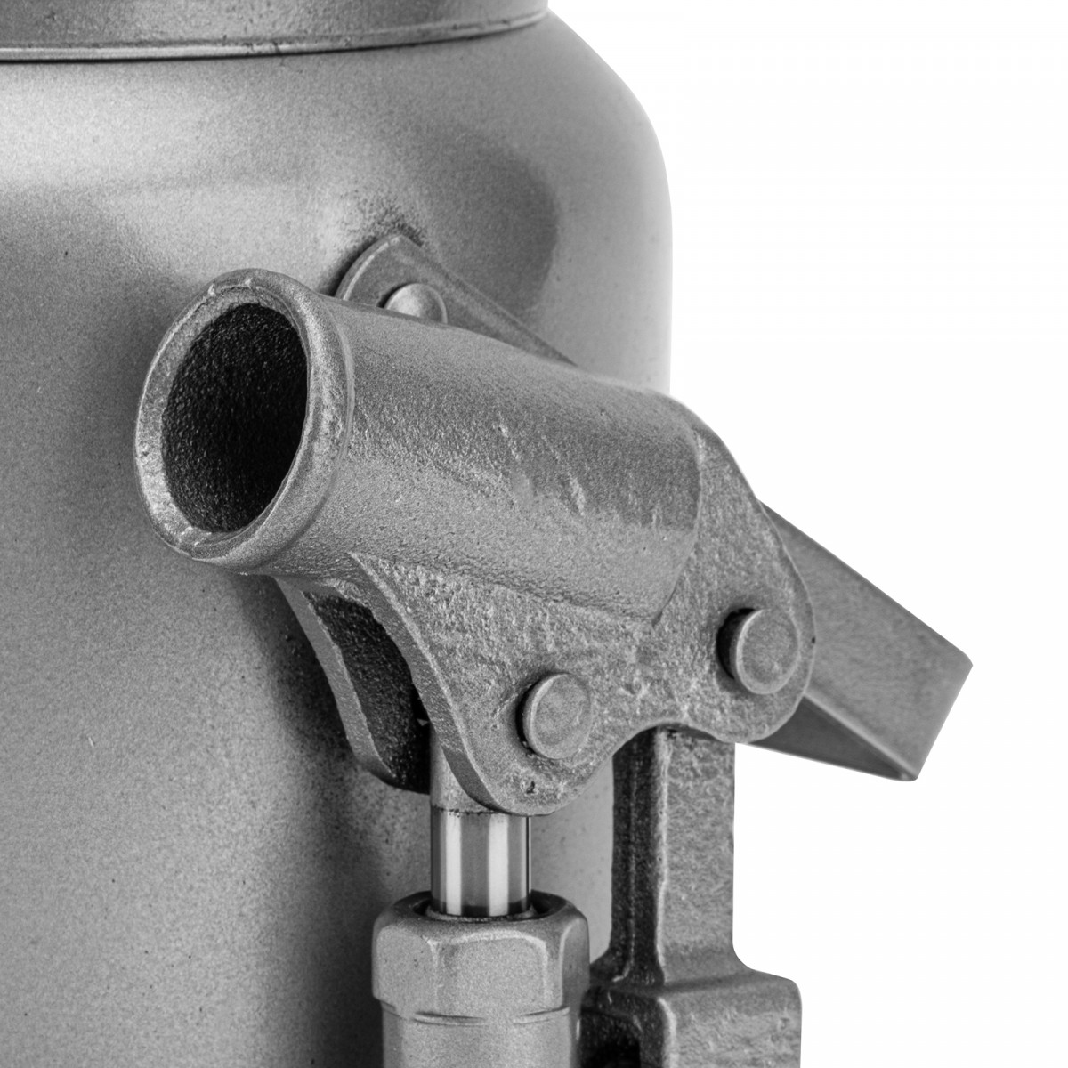 - Надежная конструкция — домкрат имеет устойчивое чугунное основание, корпус из высокопрочной стали, а также полированный шток, увеличивающий срок службы.